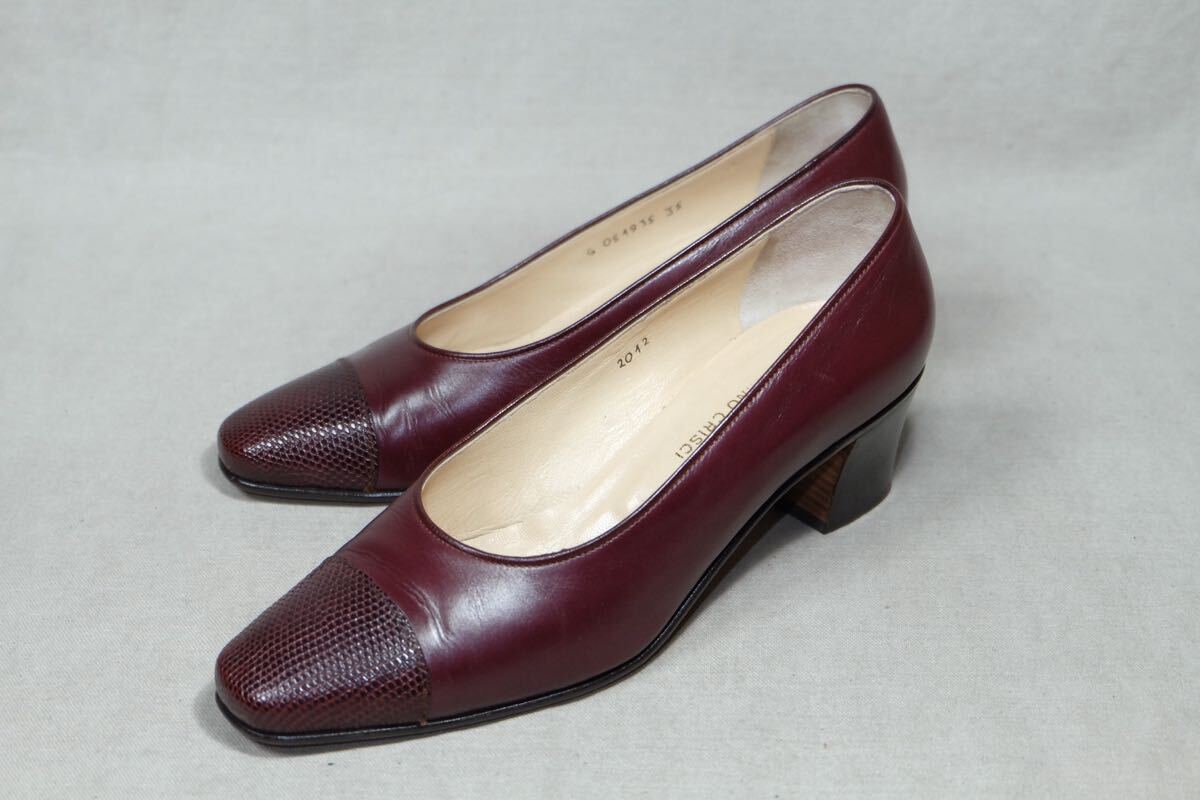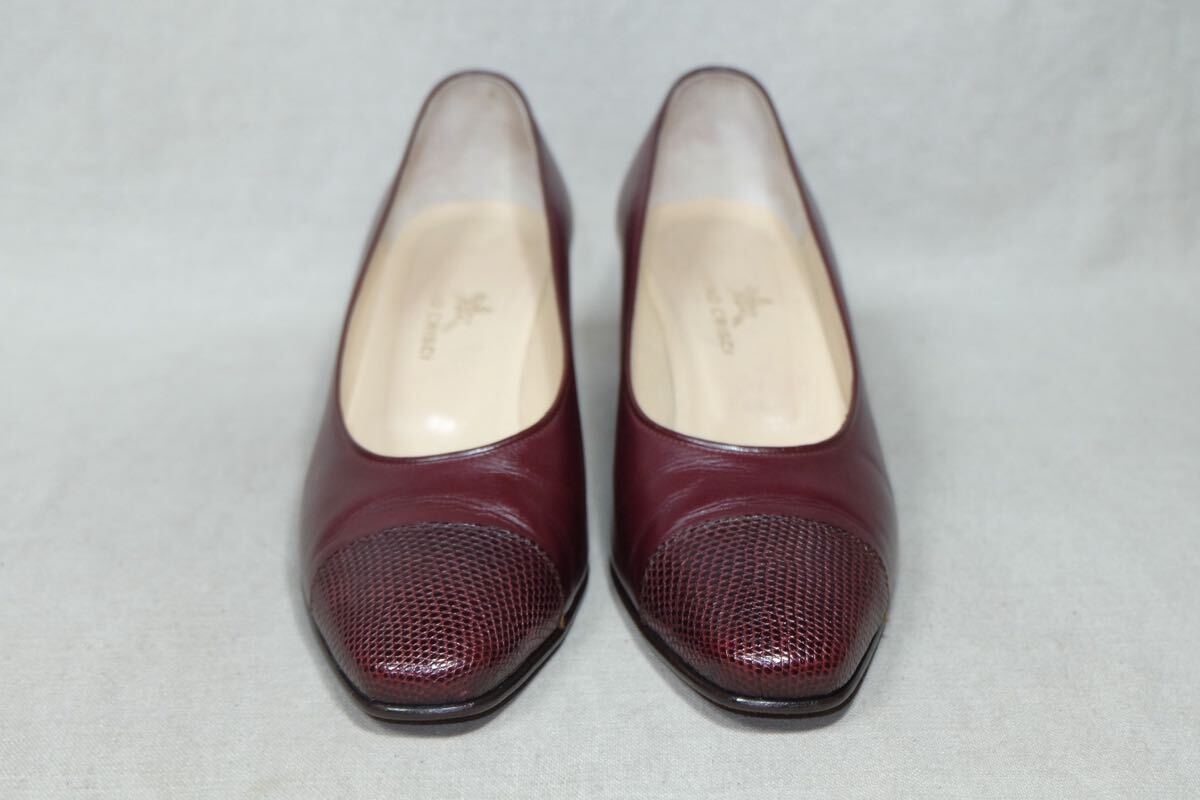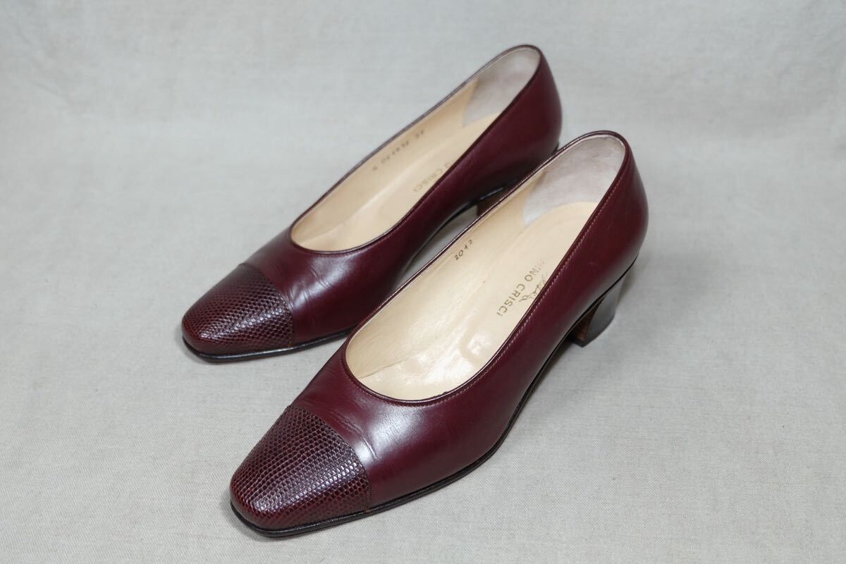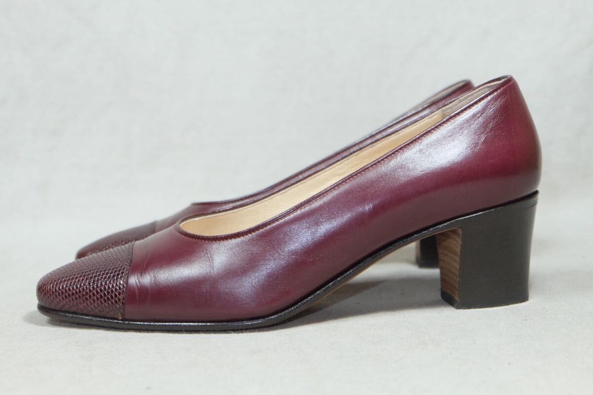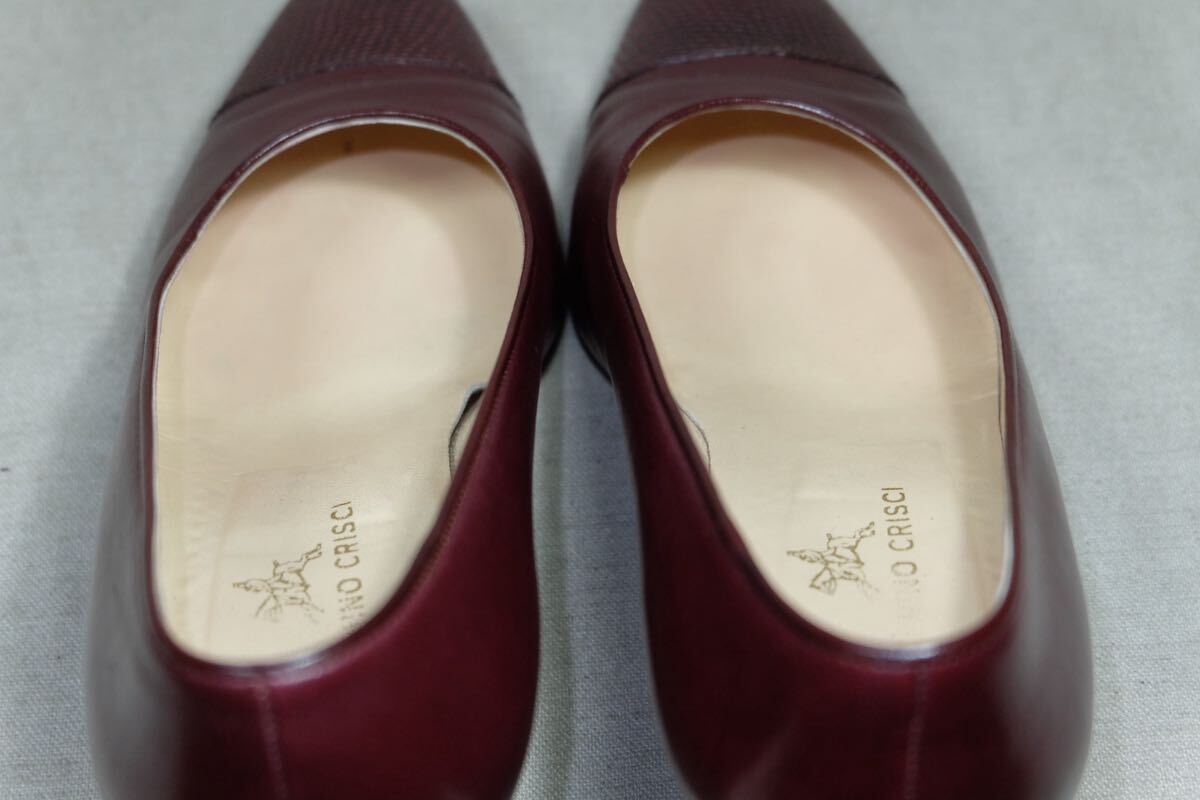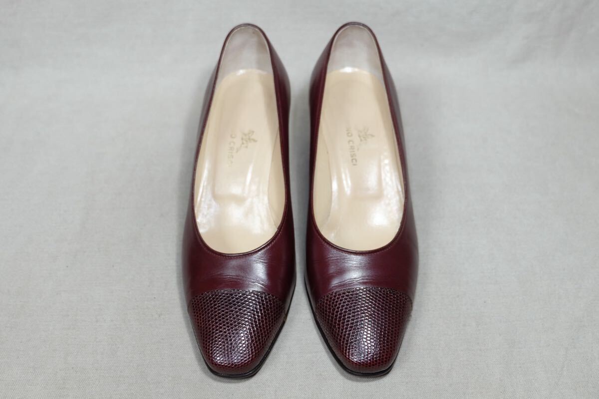希少 着用少 TANINO CRISCI タニノクリスチー 希少極上リザードレザー×最高級カーフレザーで作られたレザーパンプス UK35M マッケイ製法 バーガンディ ITALY製高級手製革靴 ハンドメイドヴィンテージシューズ | |||