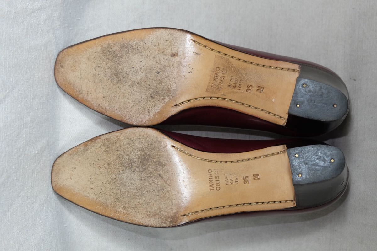 この度はアクセスありがとうございます。 今は亡きITALYの老舗高級シューズメーカーTANINO CRISCIの作り、デザイン、素材どれをとっても美しく洗練されたレザーパンプスになります。上質で艶のあるカーフレザーと艶があり 美しい希少なリアルリザードレザーをアッパーに使用し、美しく洗練されたデザインに落とし込まれています。レザーソールをヒドゥンチャネル仕上げにし、マッケイ製法で履きやすさと堅牢さを両立させるなどの技術力の高さ、人気、デザイン、クラス感とすべてが最高級の1足です。繊細なハンドメイド技術で贅沢に作り込まれた美しく極上の1足ですので永くお楽しみいただけるかと思います。 状態もかなりいいので、この機会にぜひご検討よろしくお願いします。 サイズ:UK35M( 約22.5cm) 型:パンプス アウトソール:25cm ソール最大幅:8cm ソール:レザーソール 素材:カーフレザー カラー:バーガンディ 生産国:ITALY 状態:10段階中【8.5】 アッパー:永く使用いただける美品です。 ソール:永く使用いただける美品です。 付属品:なし 基本的にはノークレームノーリターンなのでご不明点等あればお気軽にご質問、ご連絡ください。 注意事項 確認はしておりますが、中古品のため小さなキズ、汚れ等を見落とす場合があるので神経質な方はご入札をお控えください。 サイズはあくまで標準的なサイズ感なので、実寸やメーカーサイズをご参考頂きますようお願いいたします。 三日以内にご連絡いただけない場合、評価の末再出品させていただきますのでご了承ください。 | |||