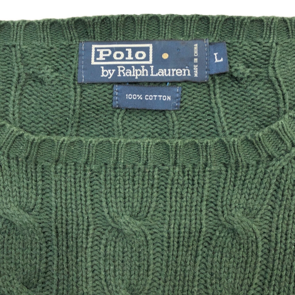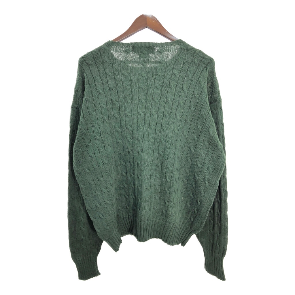 [商品管理番号] S9864 [ブランド] Polo by Ralph Lauren/ポロ ラルフローレン [サイズ] L [実寸サイズ] 肩幅:約63cm 着丈:約68cm 身幅:約67cm 袖丈:約67cm [主な素材] 表地 : コットン [色] グリーン [仕様] ケーブルニット [状態] 汚れ:肩、袖先、胸 | |||