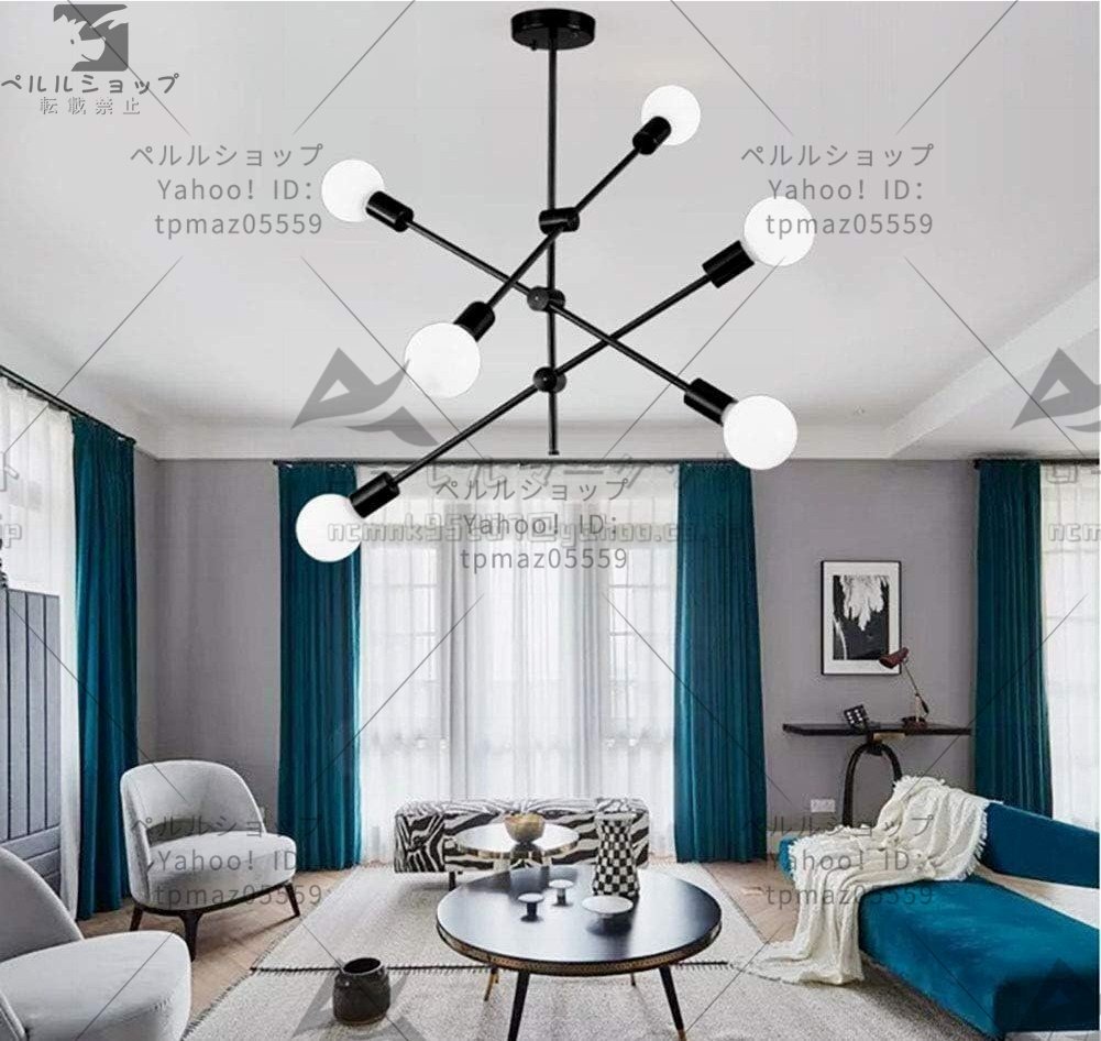 芸術品 幾何学的なライン シャンデリア クリエイティブなシンプルなパーソナルシャンデリア ベッドルーム-ブラック 6頭