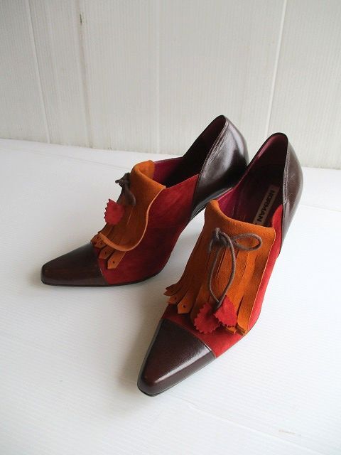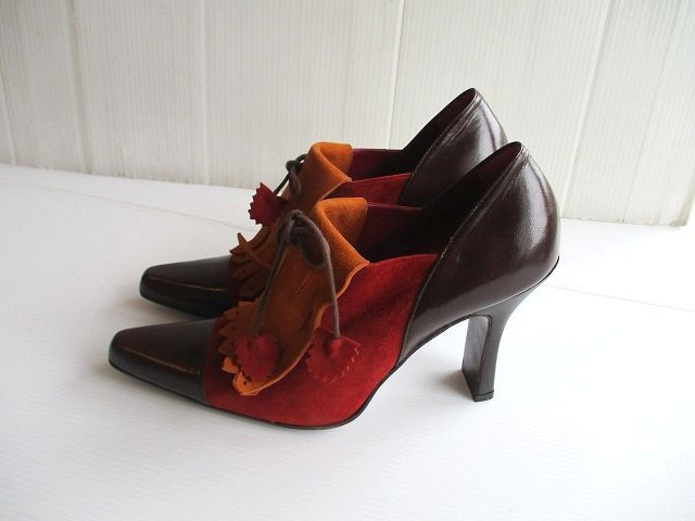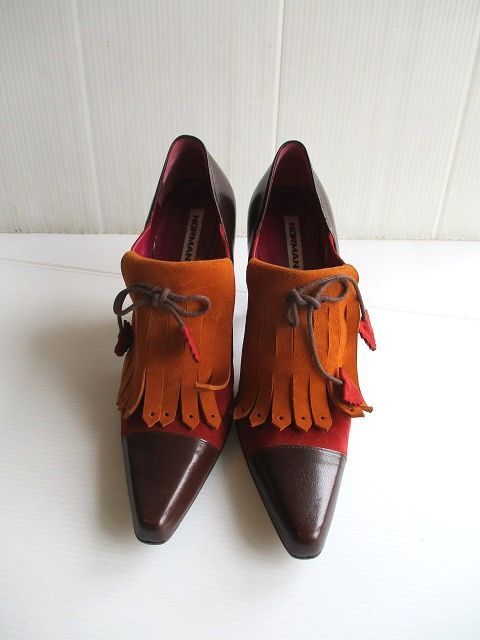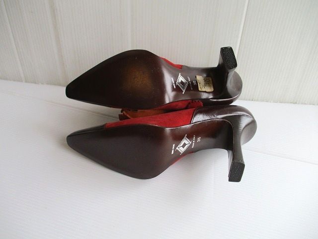 | イタリア製NORMAN SMITHERMAN 新品未使用●スエード赤オレンジ牛革パンプス① | |||