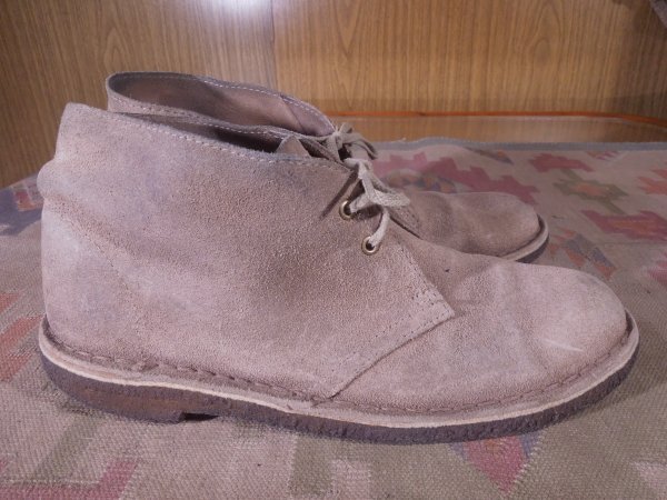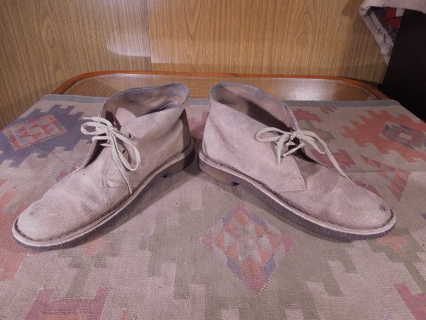 商品説明 | アメリカで買い付けた、クラークス デザートブーツです。 色はグレー(スエード)、クレープソール、ベトナム製、 ユースドで細かな傷はありますがソールの減りも僅かで良いコンディションです。 サイズ表示はUSウーマン 8 M、UK 6、日本の25センチ位、 アウトソールの実測は長さ27.2センチ、最大幅10.4センチ。 |