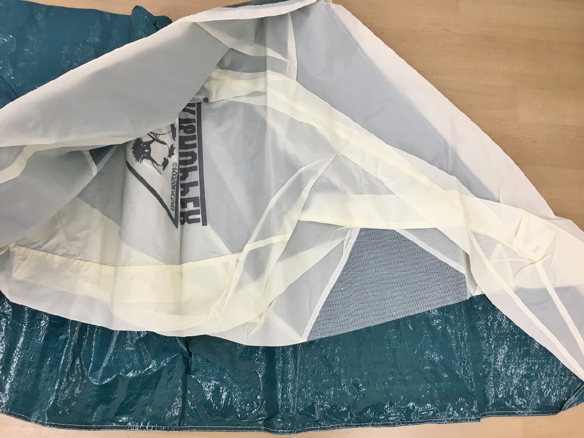未使用かと思われますが、長期保管によるシミ汚れや変色が布地素材に見られます。