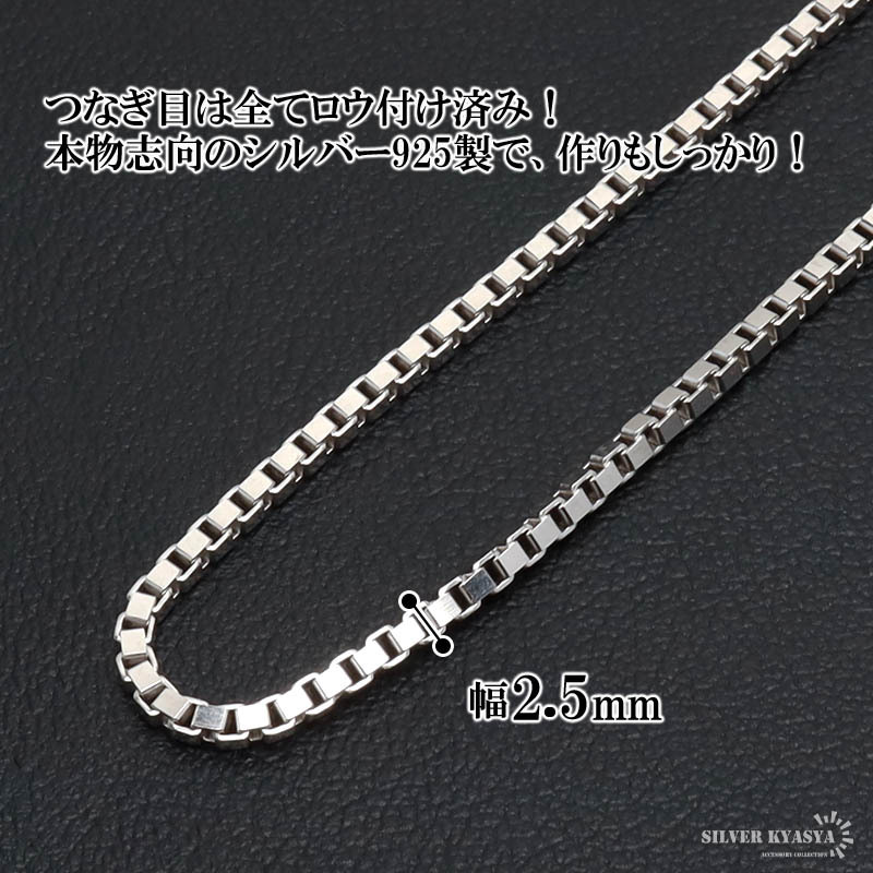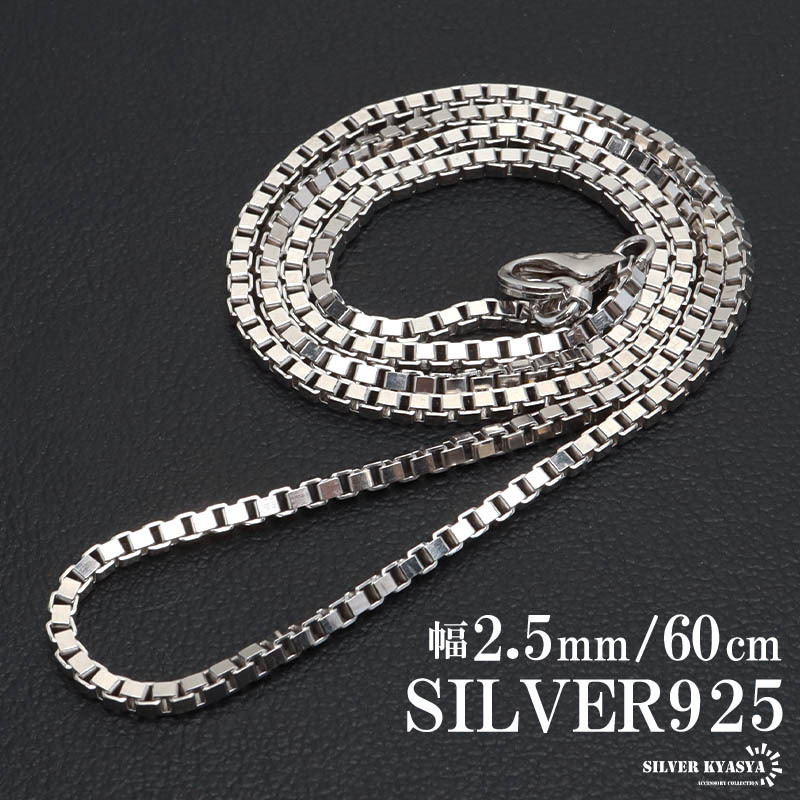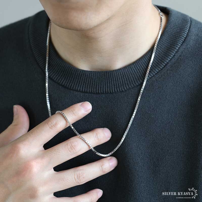 シルバー925 ベネチアンチェーン ネックレス 60cm 細身 ボックスチェーン メンズ 男性 金属アレルギー対応