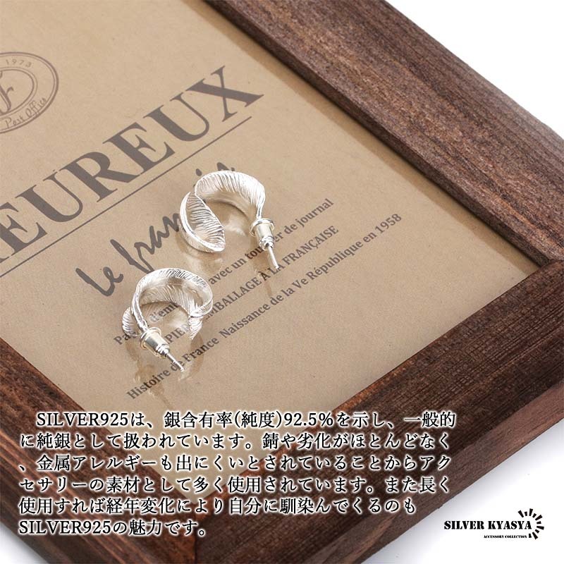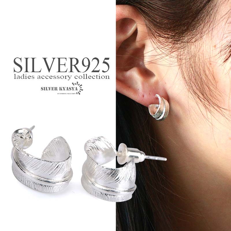 シルバー925 フェザーピアス C型フープ ピアス フープピアス 女性 小ぶり 金属アレルギー 対応 両耳用 2点