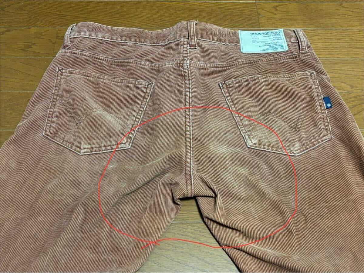 状態は10段階で言いますと4ぐらい(最高10・最低1)です。サイズはLで、約腰幅43cm、股上24cm、股下77.5cmです。