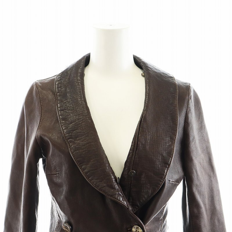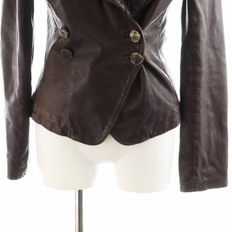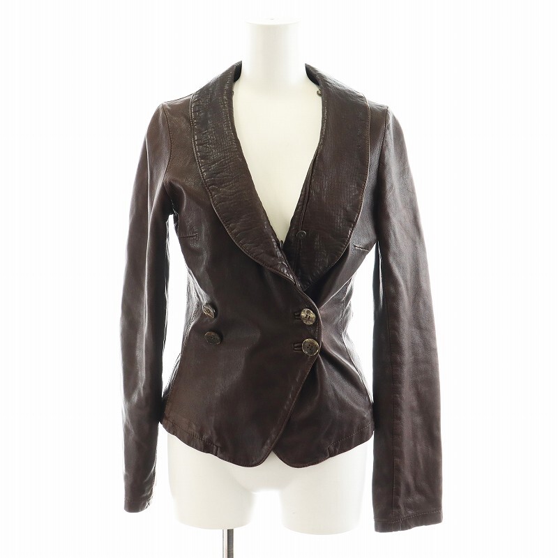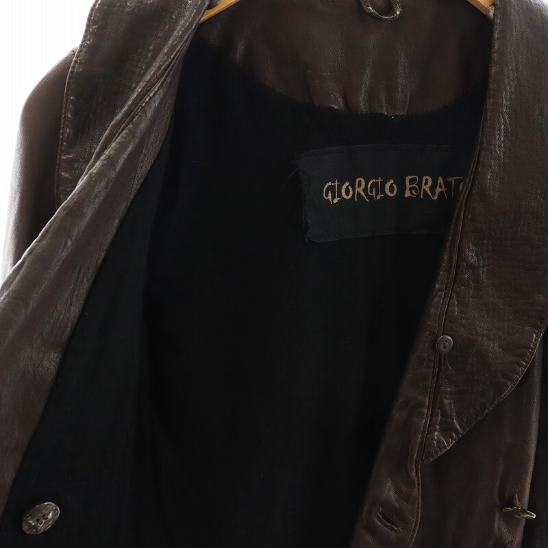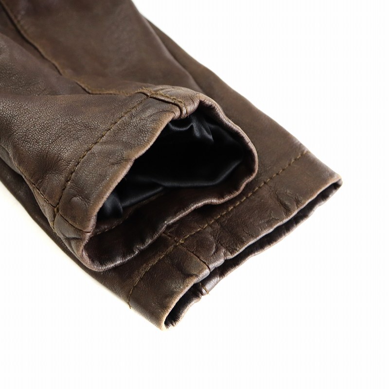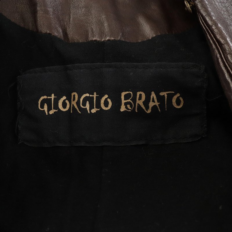 ジョルジオブラット GIORGIO BRATO レザージャケット 革ジャン 羊革 ラムレザー アンゴラ混 絹 シルク 38 S 茶 ブラウン