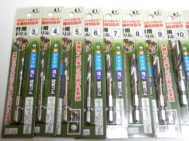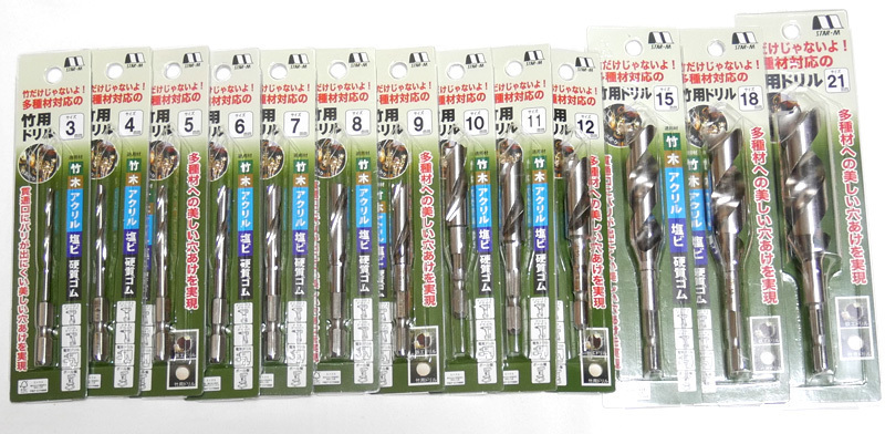 新品 竹用ドリル 13本セット スターエム 3mm 4mm 5mm 6mm 7mm 8mm 9mm 10mm 11mm 12mm 15mm 18mm 21mm STAR-M