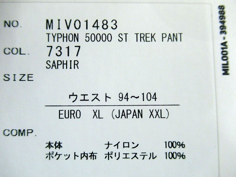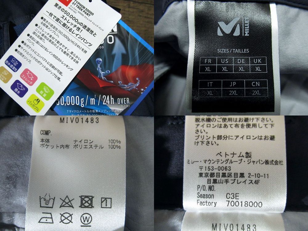 送無 JP XXL 新品 MILLET ミレー MIV01483 ティフォン 50000 防水 立体裁断 ストレッチ トレック パンツ アウトドア トレッキング 紺 ①