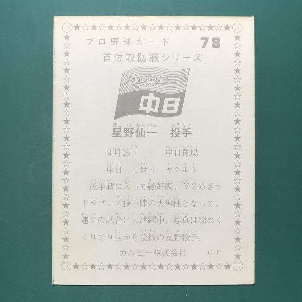 1976年 カルビー プロ野球カード 76年 78番 中日 星野   LDB28