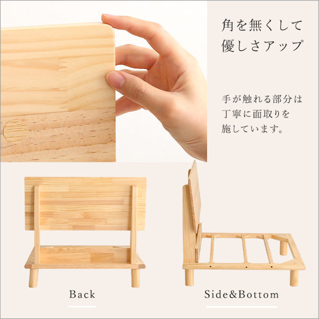 ◆丸みを帯びた天然木フレーム。外せるクッション