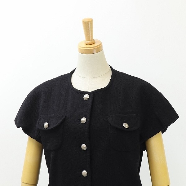 | ◆Leilian レリアン フレンチスリーブ メタルボタン ウール ノーカラー ジャケット 黒 ブラック 11 | |
