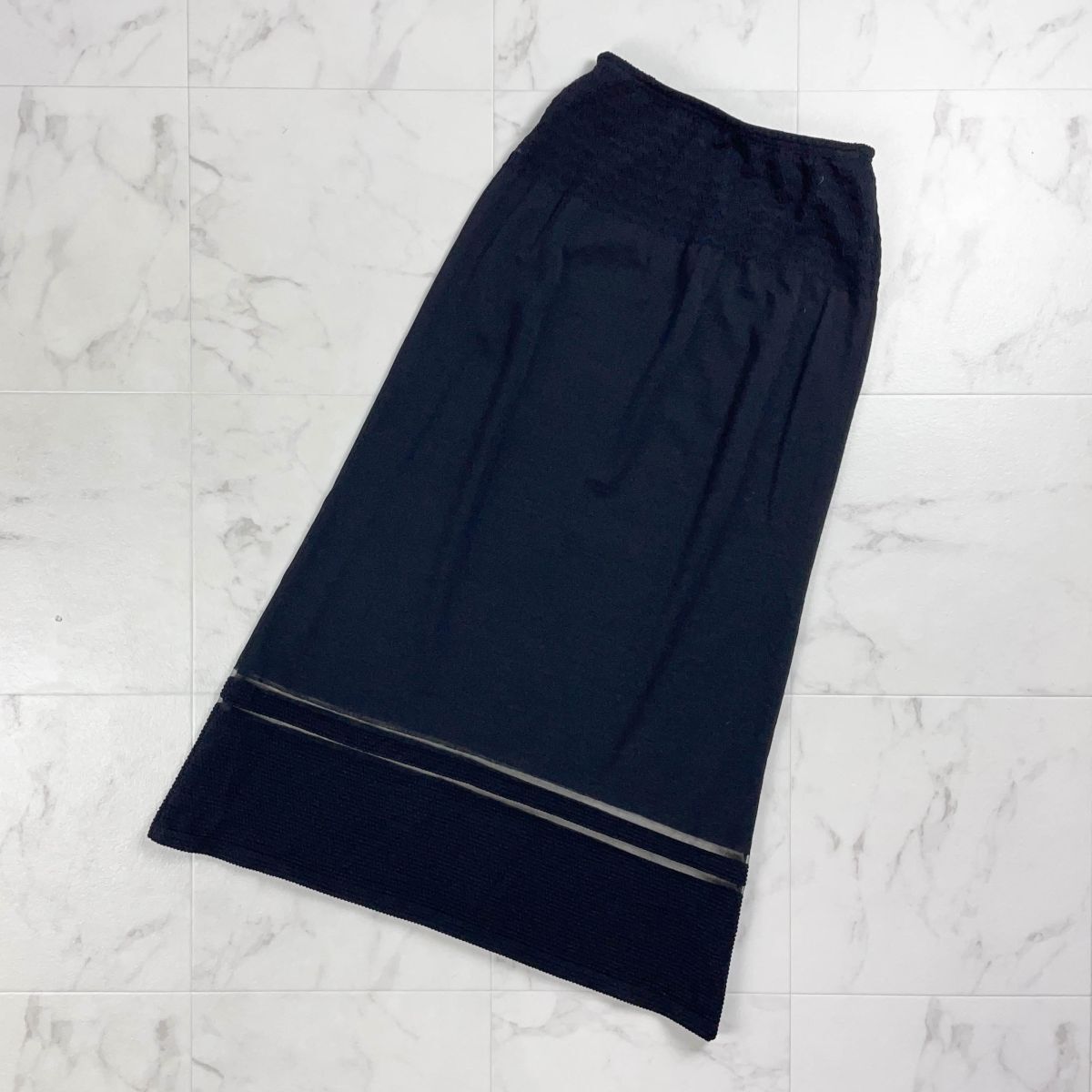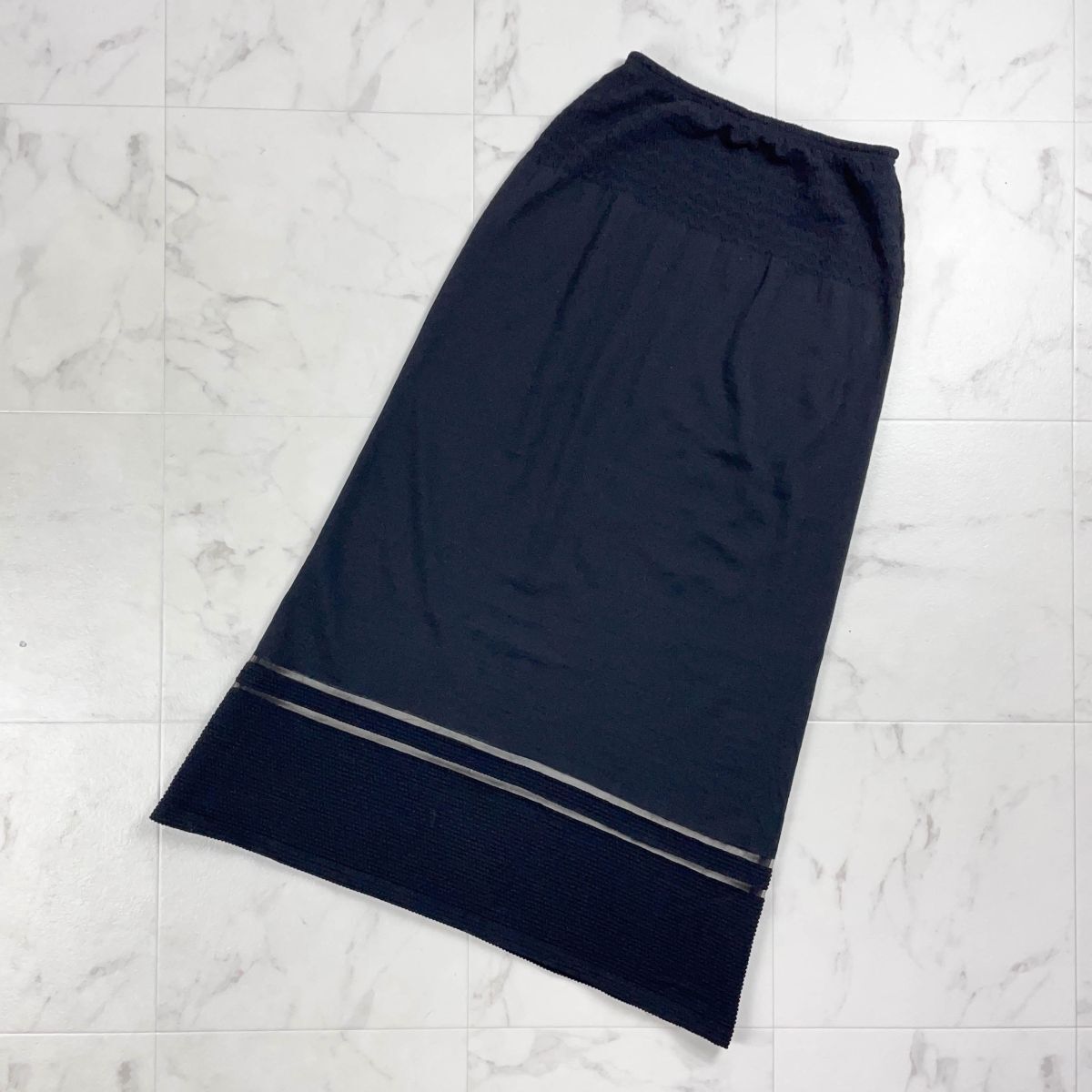 美品 HIROKO BIS HIROKO KOSHINO ヒロココシノ シースルータイトスカート ウールニット ストレッチ素材 ロング丈 黒 ブラック サイズ9*YC23
