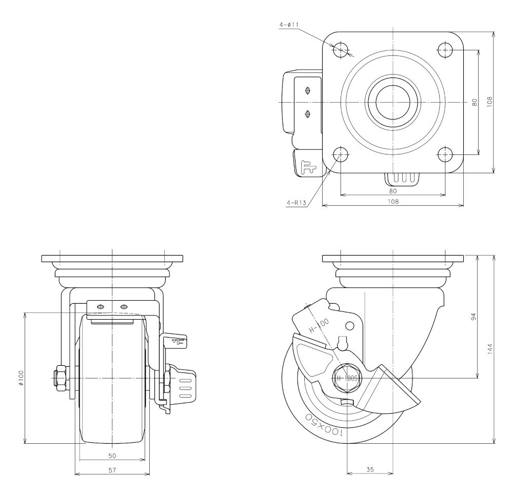 車輪径(材質) 100Φ(ゴム)