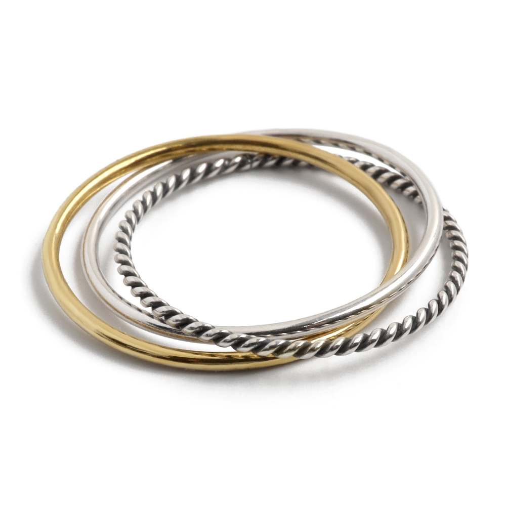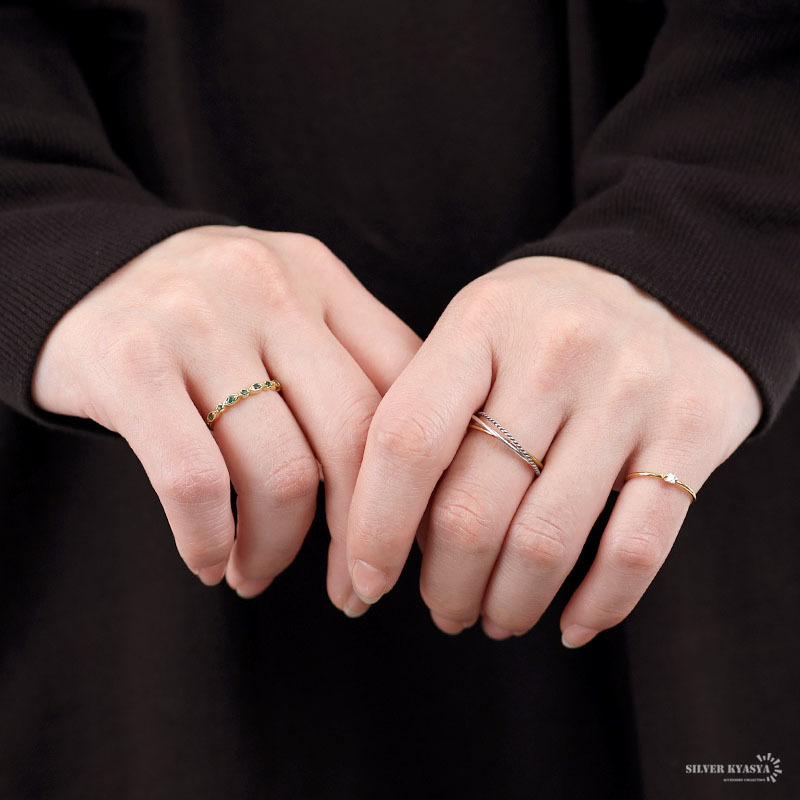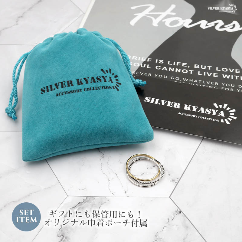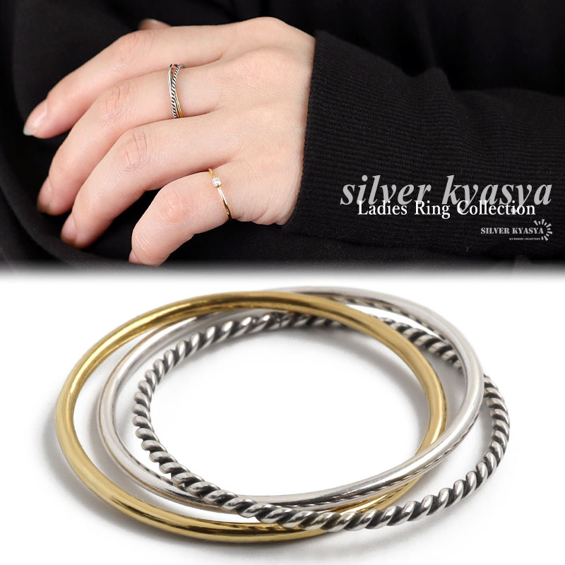 シンプルな極細の三連リング。どんなスタイルにも合うアイテム。シルバー、ゴールド、ロープデザインの三連。指を綺麗に見せてくれます華奢なリングです。素材には、人気のSILVER925を使用。サビや劣化がほとんどなく、金属アレルギーも出にくい。*ゴールド部分には、真鍮素材を使用しております。ギフト用にも、保管用にも便利!当店オリジナル巾着ポーチと一緒にお届け。