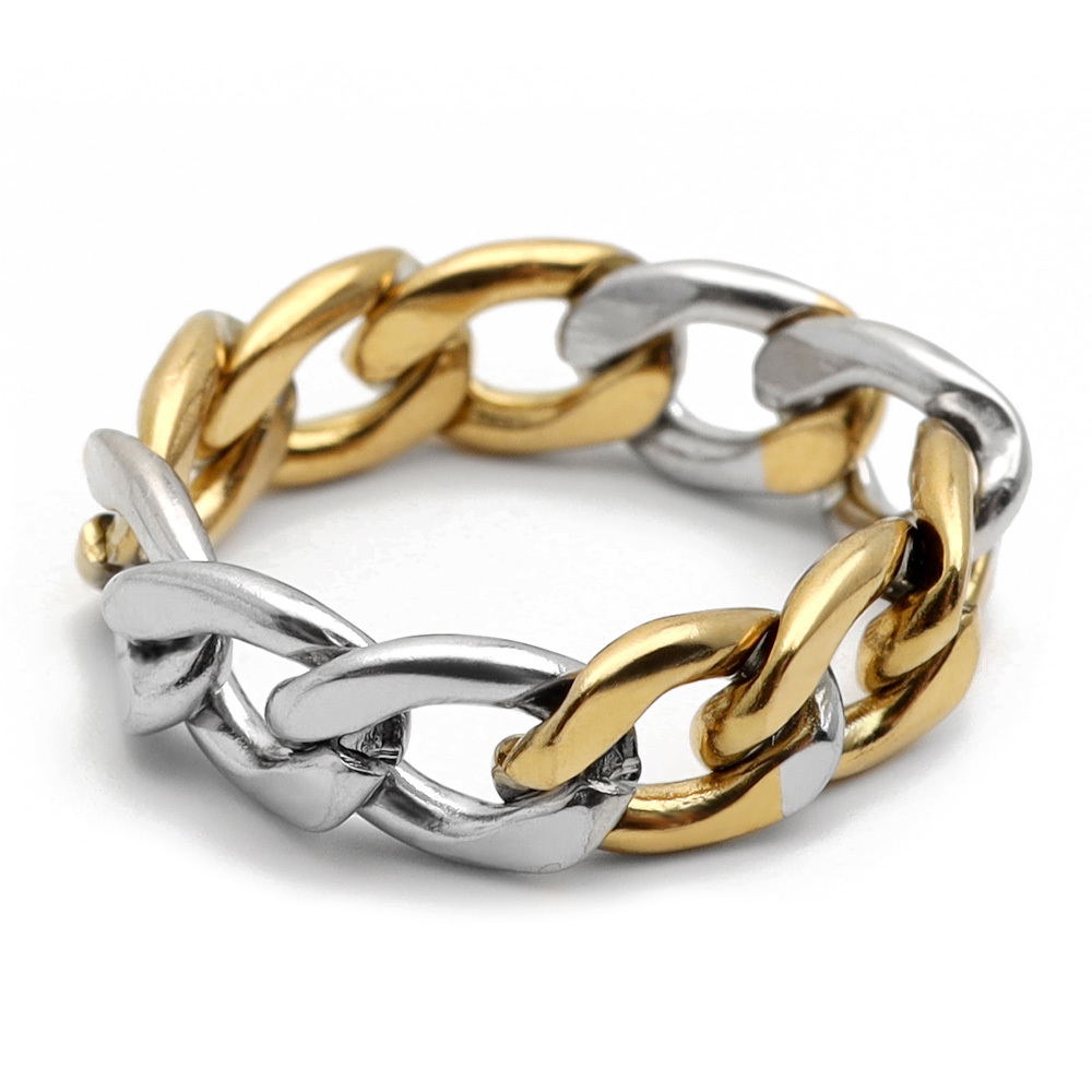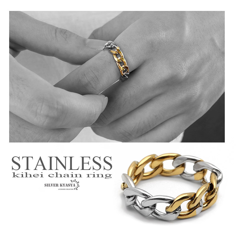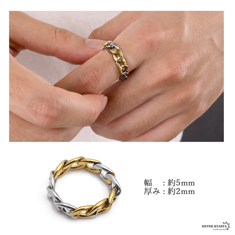 ハンドメイドで作られた、こだわりの喜平モチーフリング。ゴールドとシルバーのミックスカラーが珍しい、目を引くアイテム。