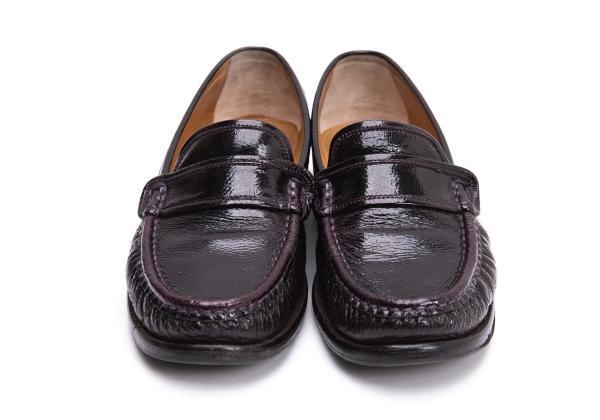 | ヒロフHIROFU シワエナメルレザーローファー 焦げ茶24 1/2 |