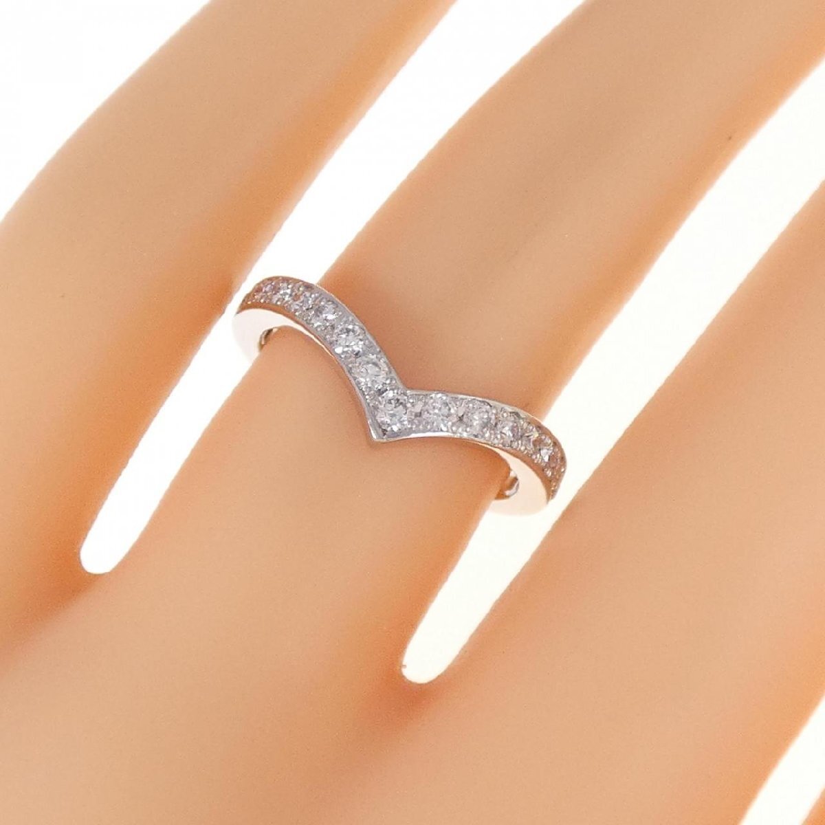 クリアに煌めくダイヤモンドをセッティング。V字フォルムのアームが指を長く細く見せてくれます。