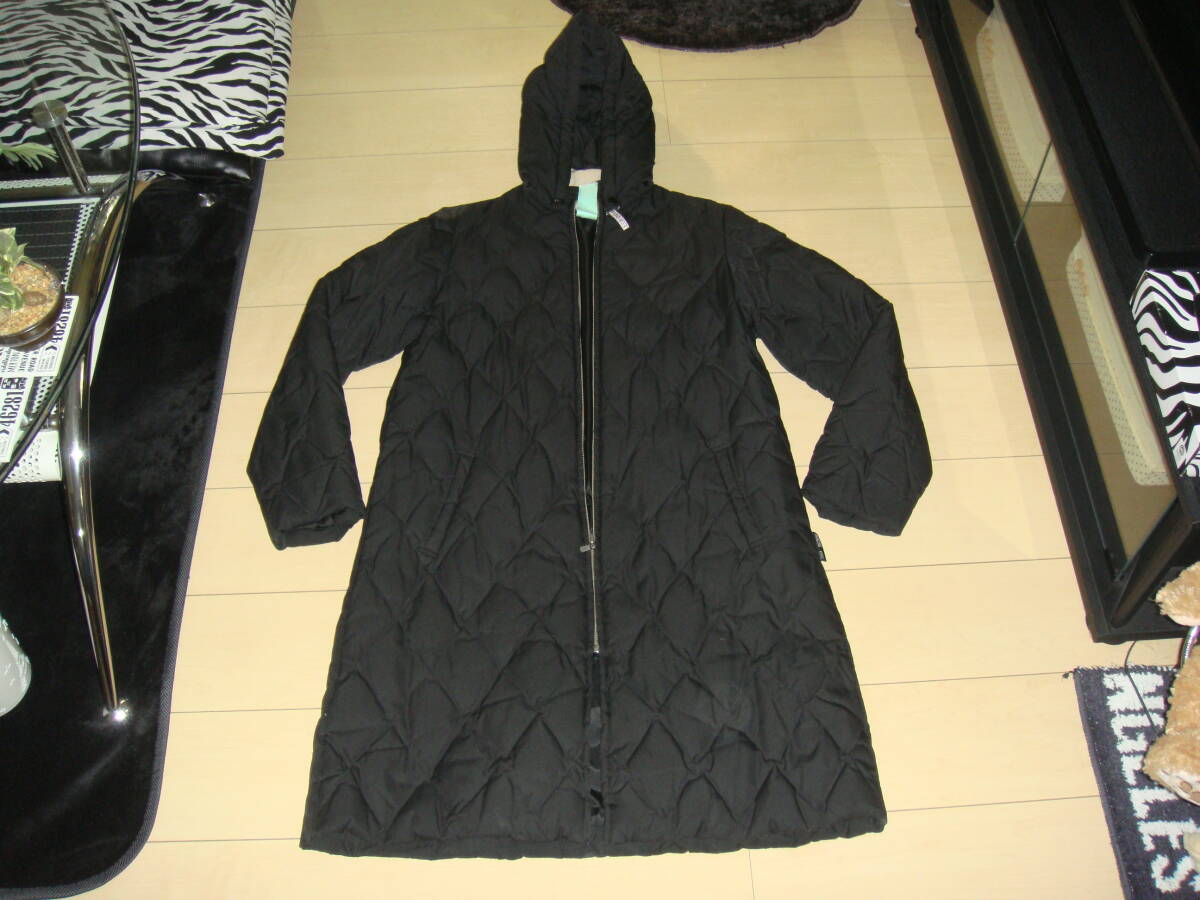 フード付きキルティング ダウンロングコート サイズ M カラー ブラック クリーニング済 フードは取り外しできます。 素材は、タグが消えているのでわかりません。使用感ありますが、致命的なダメージはありません。