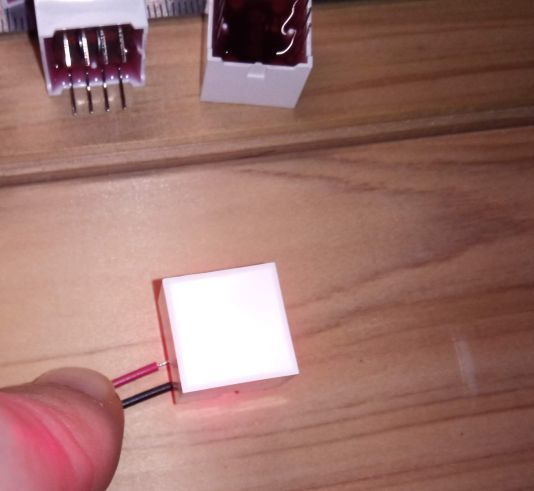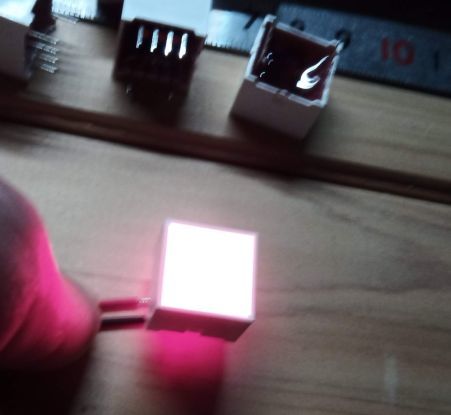 写真だとうまく撮れませんでしたが、色は普通の赤LEDの色です。
