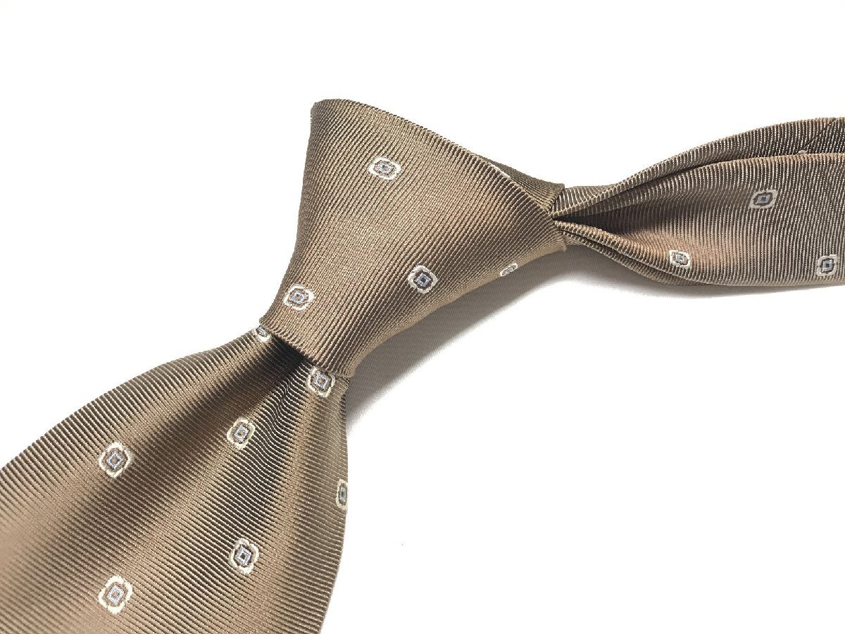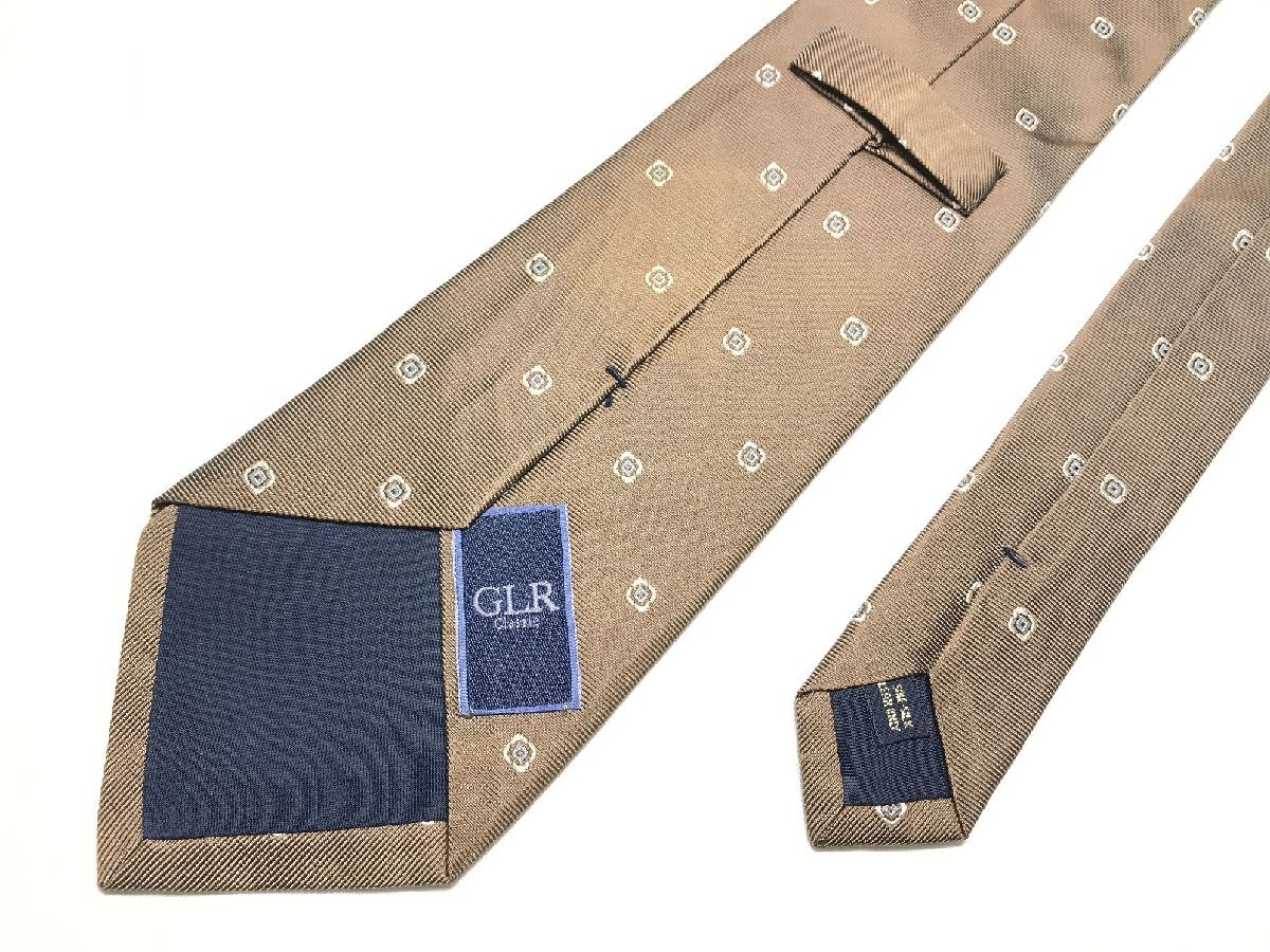 【グリーンレーベルリラクシング GLR Classic】 織柄 小紋柄 絹 シルク ネクタイ (メンズ) 微光沢 ブラウン系 ◯27KSM0998