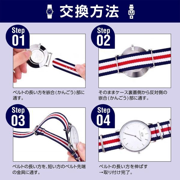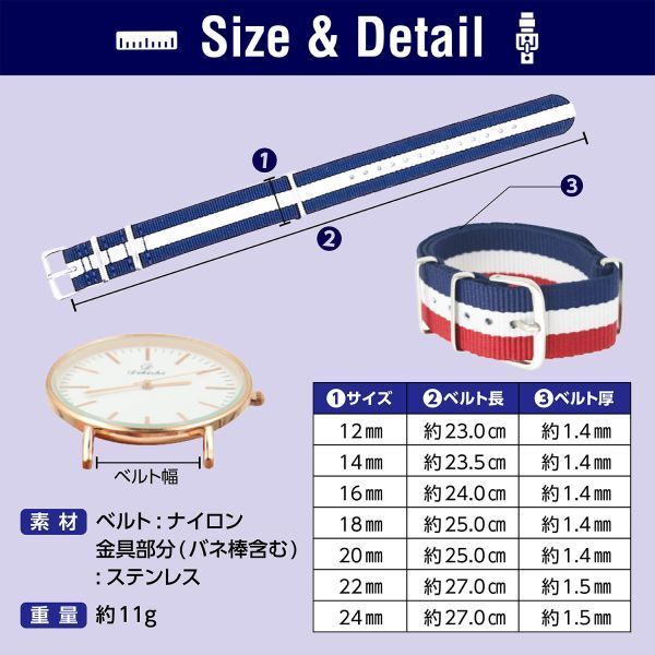 ※こちらは、ネイビー×ホワイト 18mmのページになります。 [商品名] 腕時計ナイロンベルト NATO TYPE メンズ レディース バネ棒外し&バネ棒2本付 [商品詳細] NATO G10ベルトを基とした引き通し式のNATOタイプ腕時計用交換ベルトです。 ・軽量 長時間の装着でも快適。 ・水洗いOK 汗や埃で汚れたら丸ごと水洗いOK。 ナイロン素材だから速乾。 メーカー例) ダニエルウェリントン, ハミルトン, ディーゼル, SEIKO, CASIO, CITIZEN etc [素材] ベルト:ナイロン 尾錠 : ステンレス [サイズ] 18mm [カラー] 07 ネイビー×ホワイト [内容品] ベルト × 1本 交換用バネ棒 × 2本 バネ棒外し工具 × 1本 [コンディション] 新品未使用品です。 [注意事項] ・サイズは生産時期によって、多少の誤差がございます。 ・ベルト交換に際し、時計本体や付属部品、またはベルトや工具等に破損等の問題 が生じましても当店では一切の責任を負いかねます。 自己責任の上、十分注意して作業を行って下さい。 ・製品は予告なく仕様を変更する場合がございます。 ・モニター・照明の都合上、実際の色味と多少異なる場合がございます。 予めご了承下さい。 [出品者よりお礼] この度は、私の出品商品を見ていただきありがとうございました。 それでは、気持ちの良い取引をお待ちしております。 |