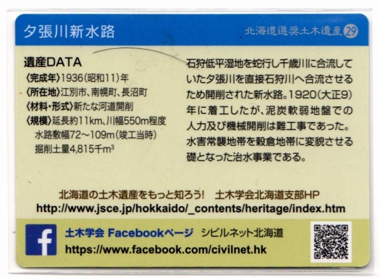 | ★☆土木遺産カード 夕張川新水路 N01☆★ | |