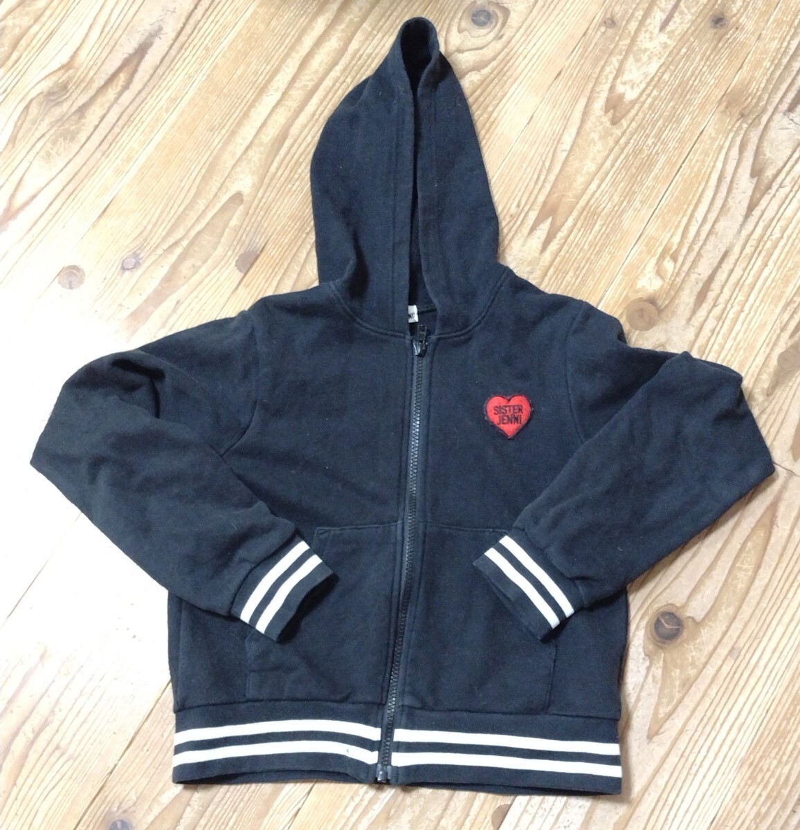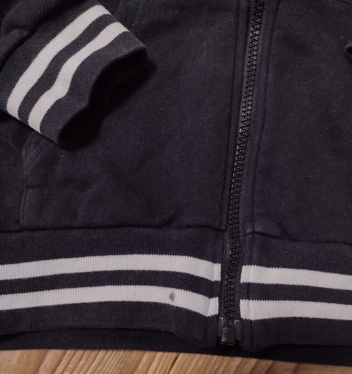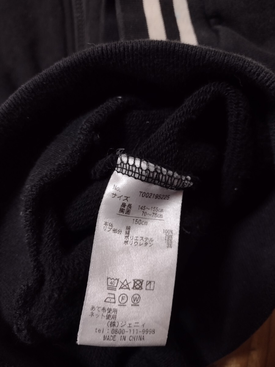 左袖、裾の部分にペンか習字の墨のような黒いシミがあります。