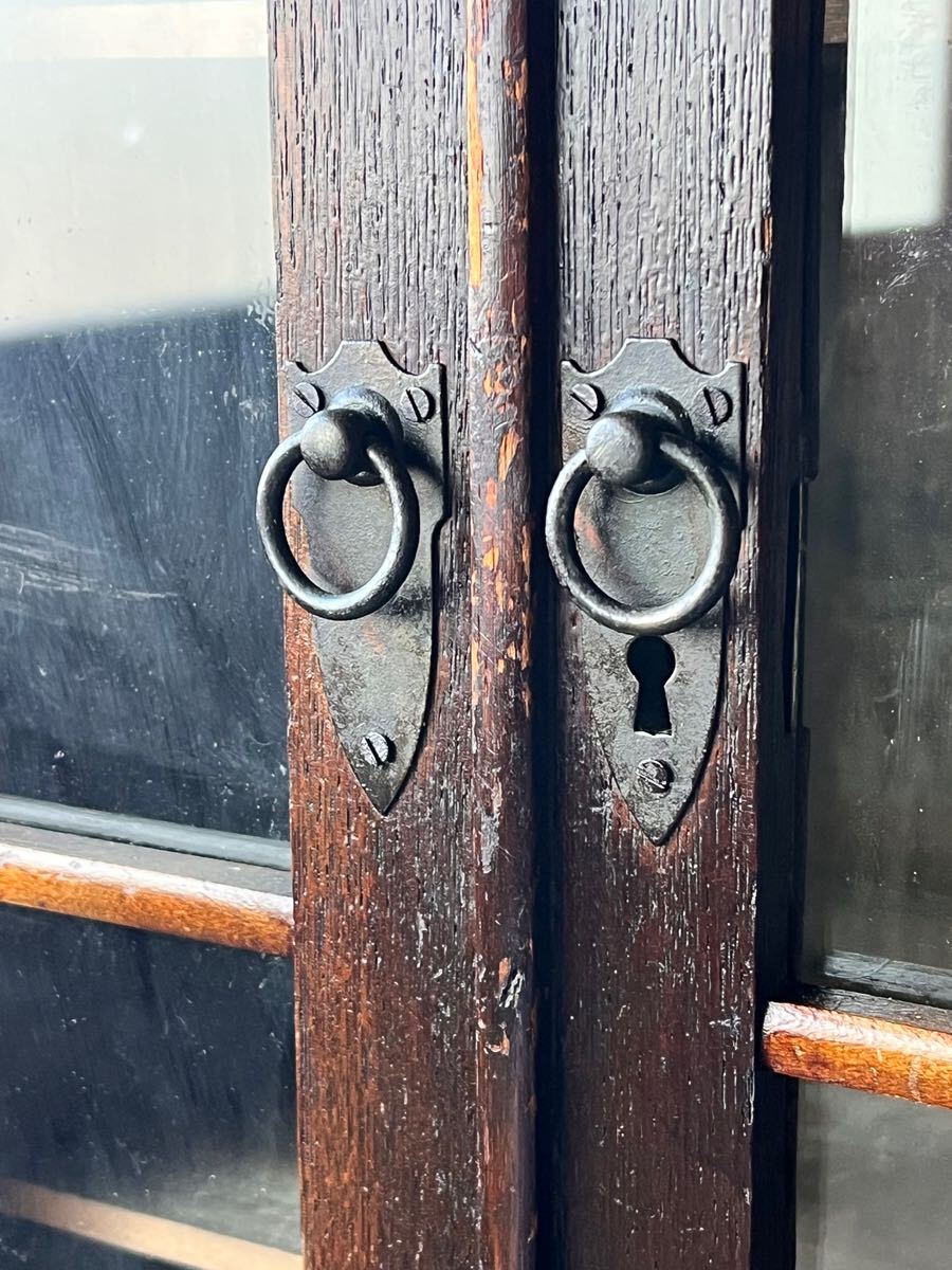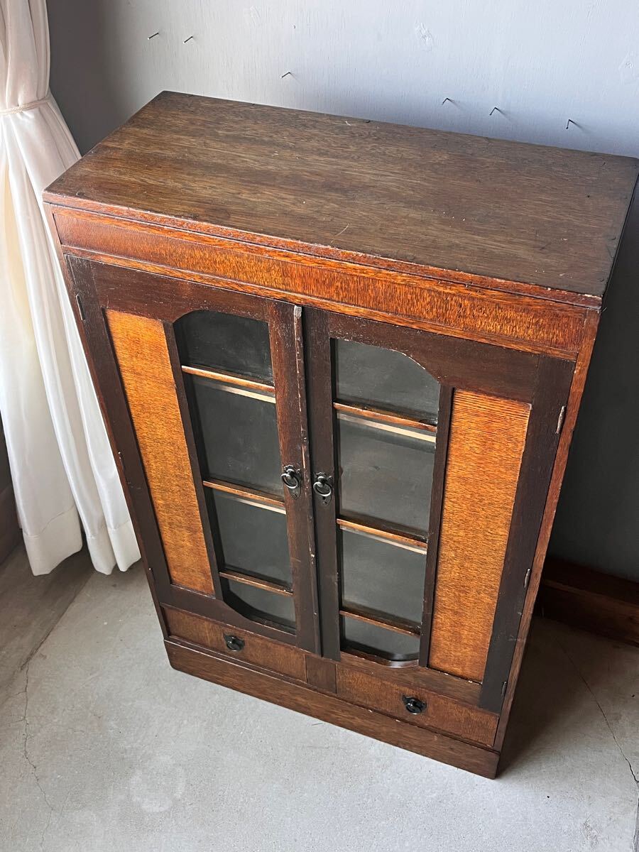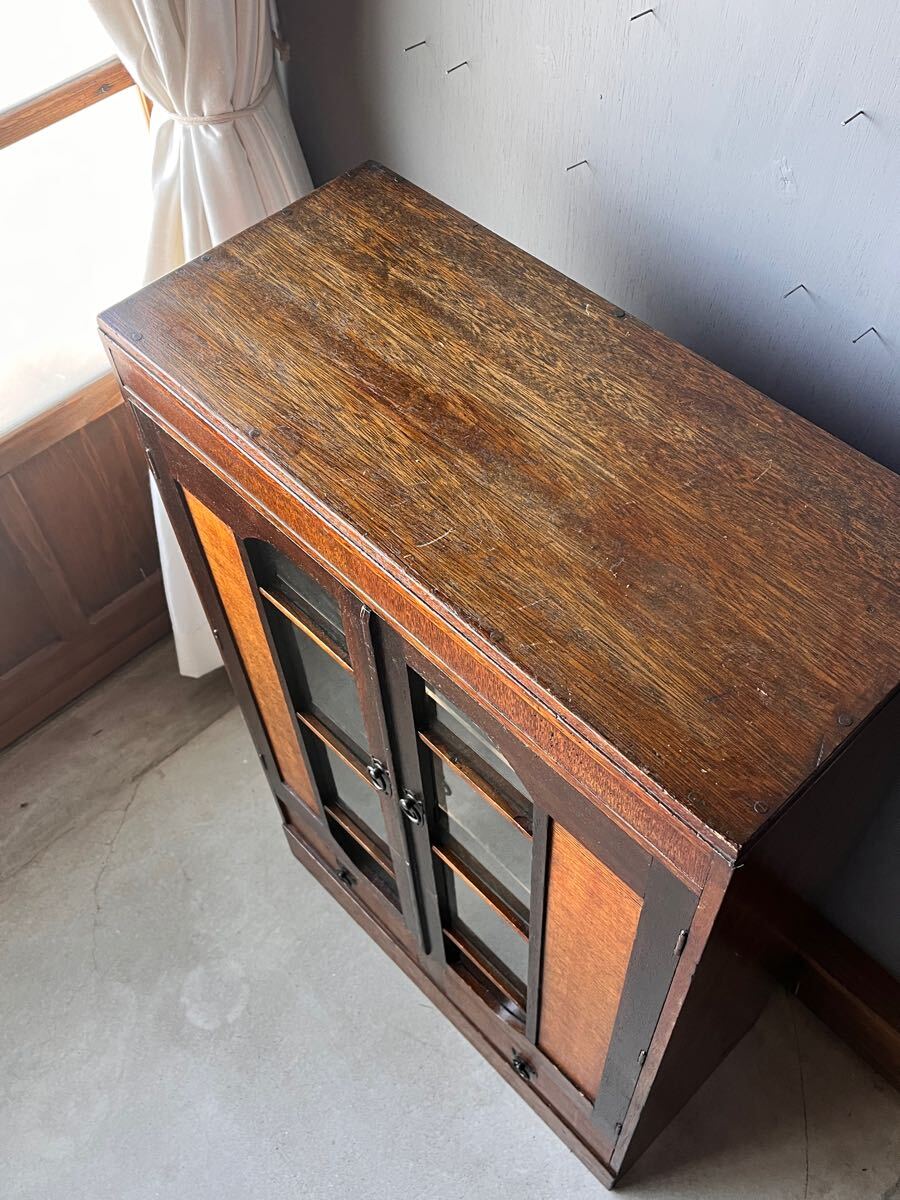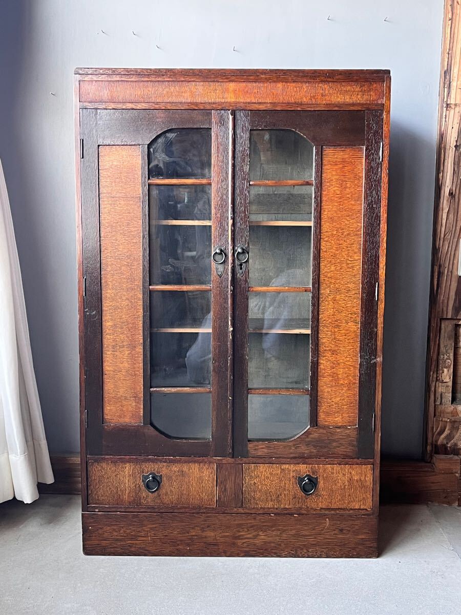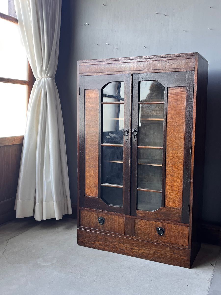 和でも洋でも合いそうな温かみのあるガラスケース。本の収納におすすめです。