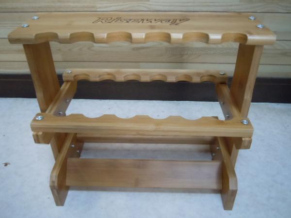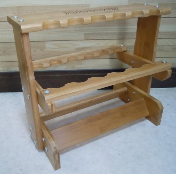 12本のロッドがディスプレイできる安定感抜群の竹集成材製のミニロッドスタンド。