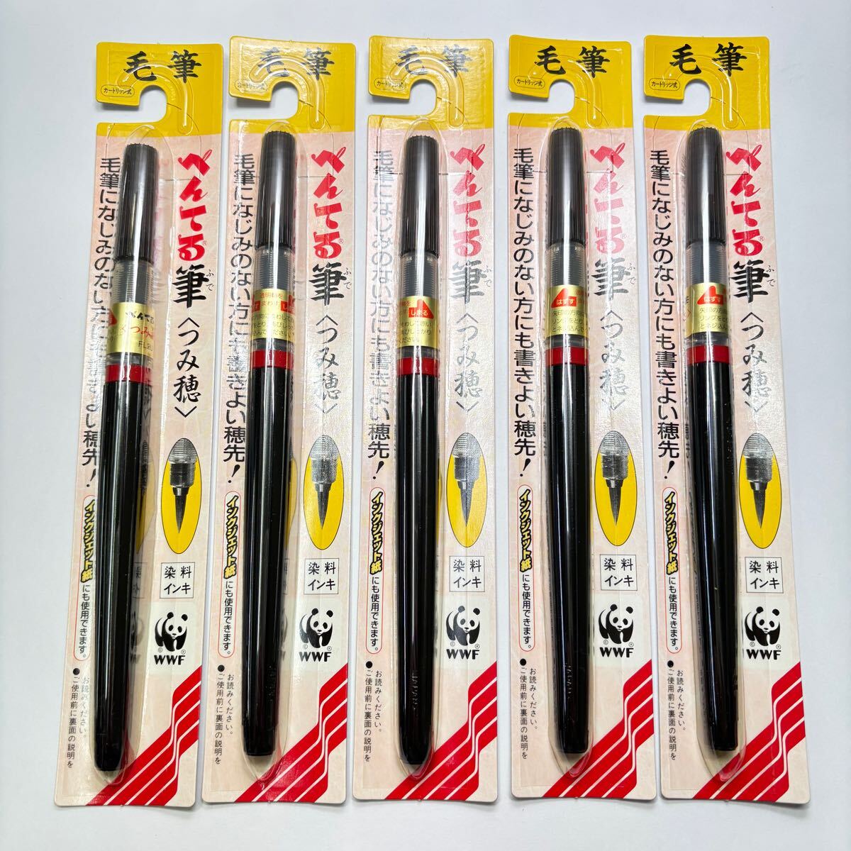 | 【新品未使用】文具店在庫品 ぺんてる 筆ペン 毛筆 つみ穂 染料インキ 5本 @ | |||