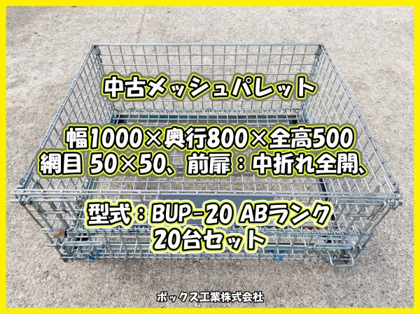 【中古】メッシュパレット 20台セット 1000×800×H500 網目50×50 鉄 網 カゴ BUP-20ABランク(中折れ全開タイプ)倉庫 運搬 輸送