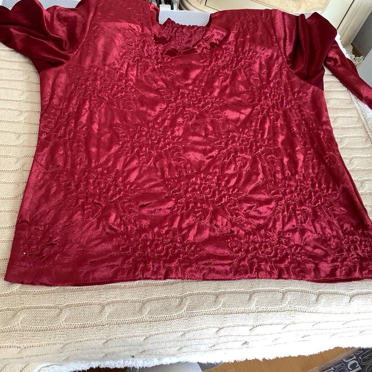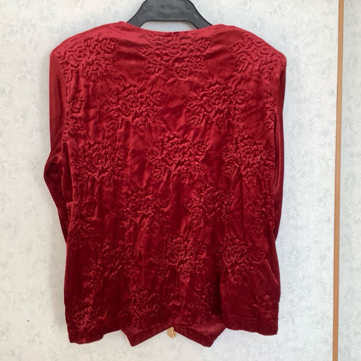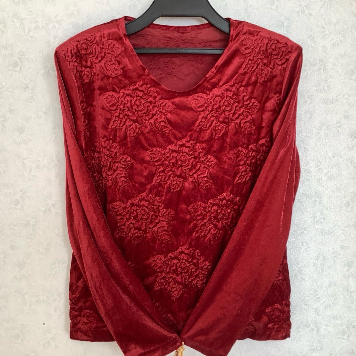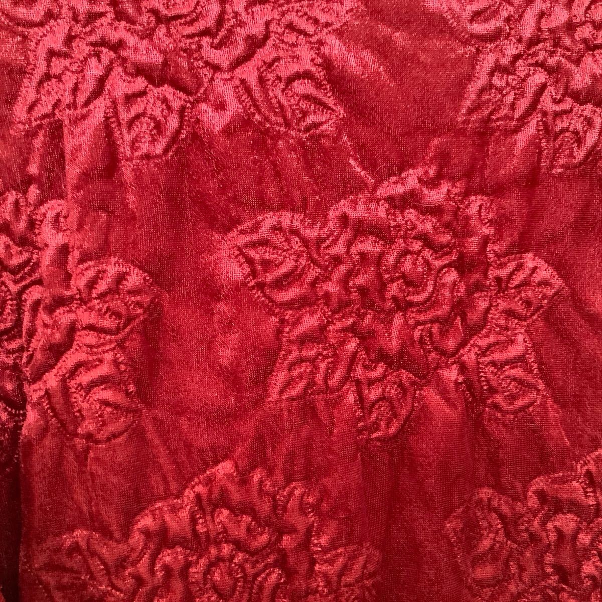 ◯ 真紅地に凹凸で花柄の光沢のあるお品です。