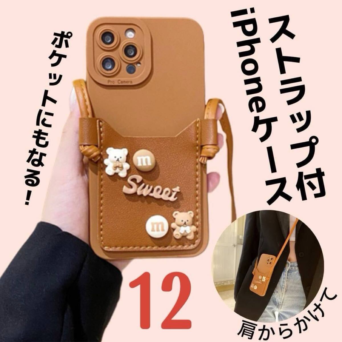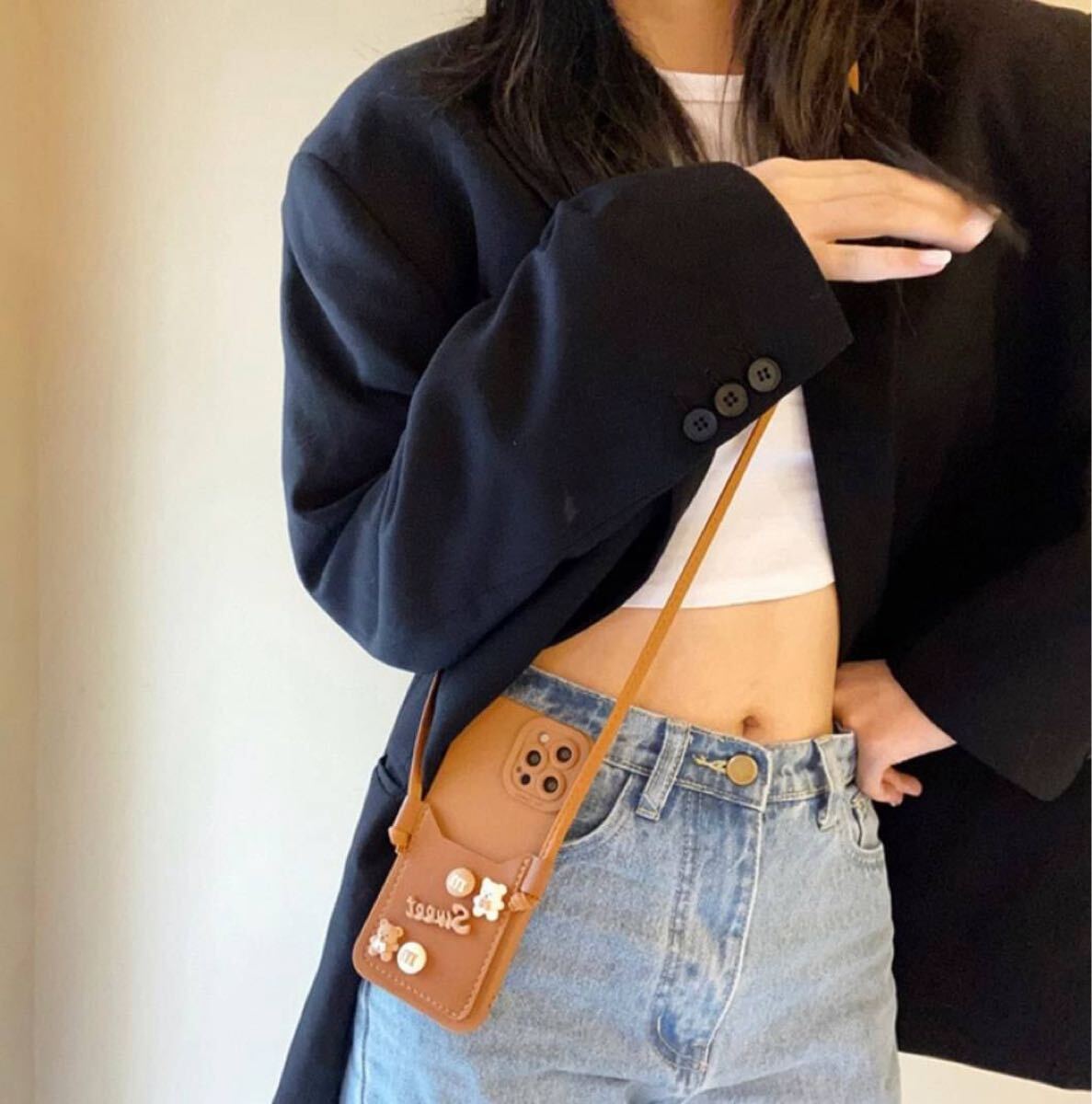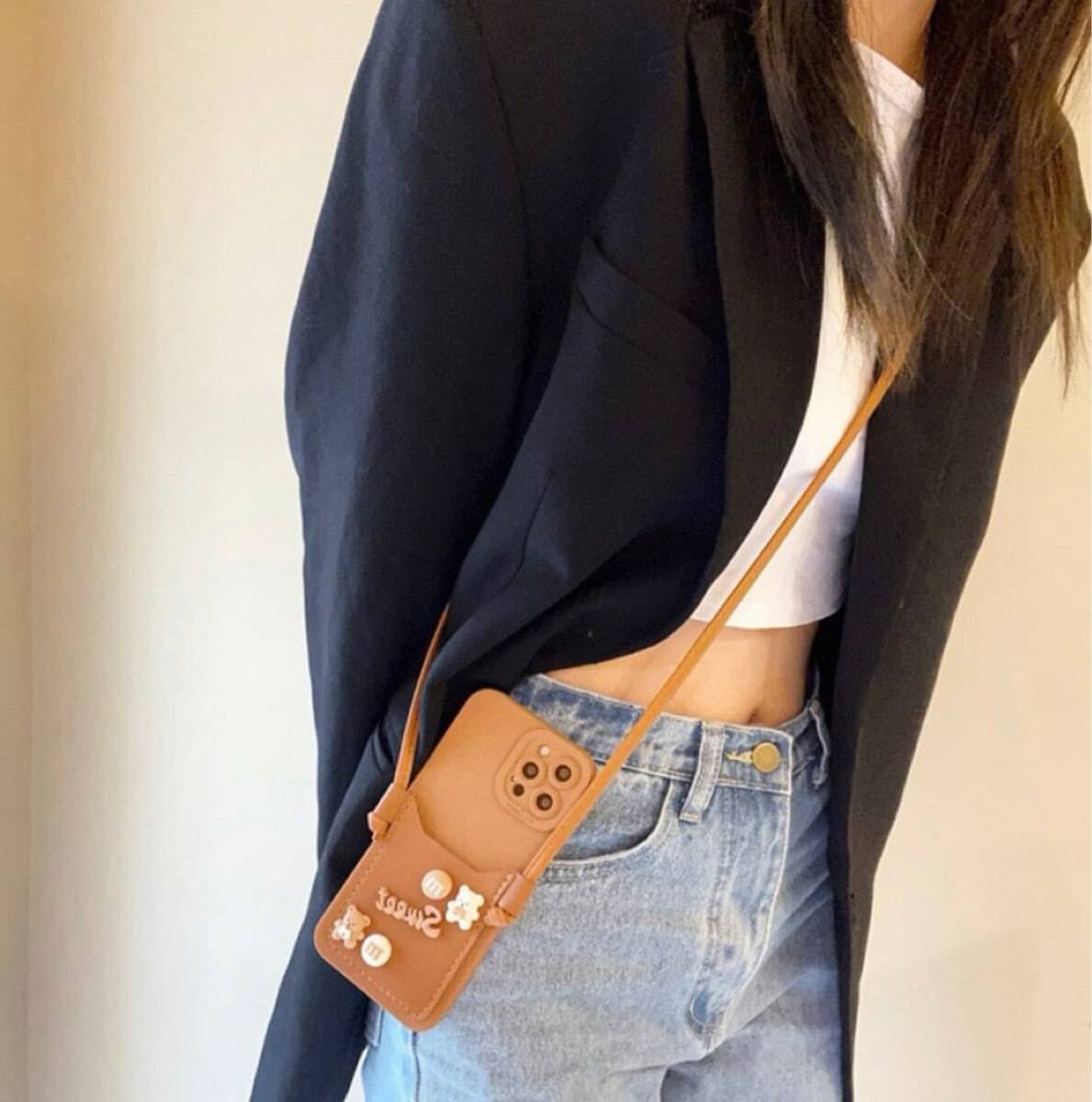 #iPhoneケース #落下防止 #肩紐 #ストラップ #紐 #オシャレ #ブラウン #茶色