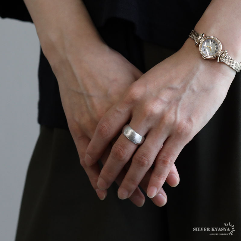 商品概要 | ■ITEM DETAIL ころんとした丸みのあるフォルムが可愛い甲丸タイプのワイドリング。表面につや消し加工を施し、淡く上品に輝きます。 ■SILVER925素材 シルバー925は、銀含有率(純度)92.5%を示し、一般的に純銀として扱われています。サビや劣化等がほとんどなく金属アレルギーも出にくいとされており、アクセサリーとして重宝される金属です。 |
