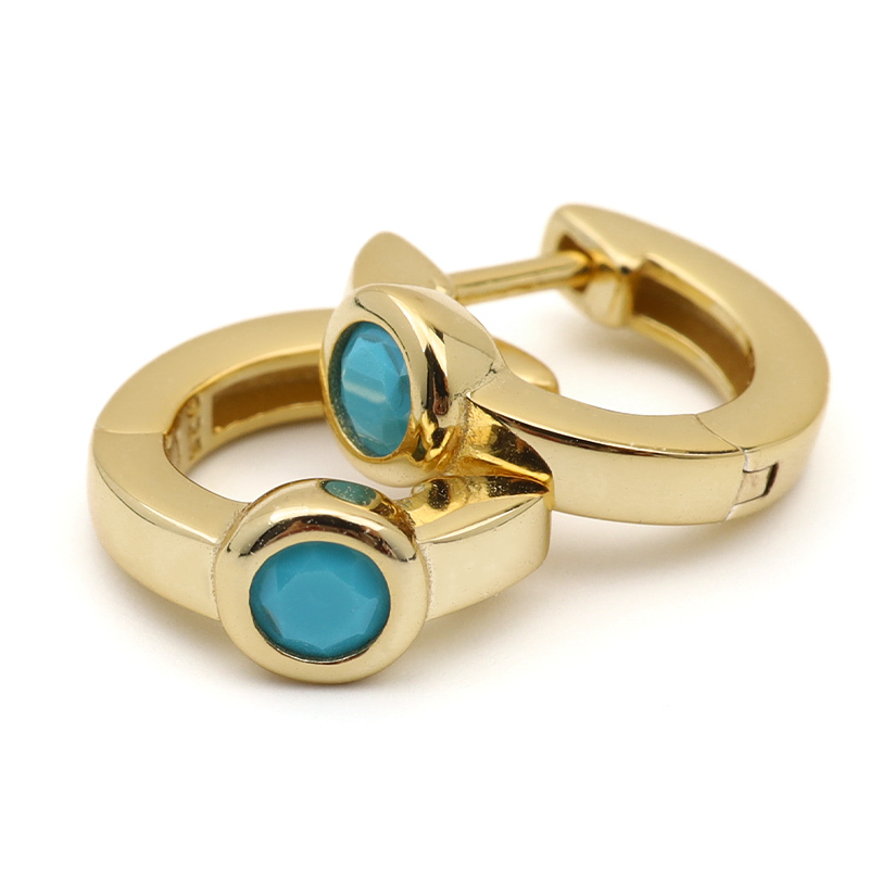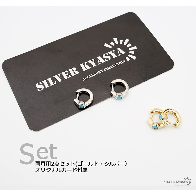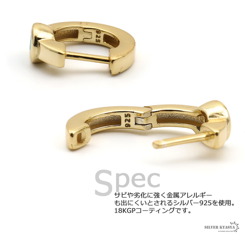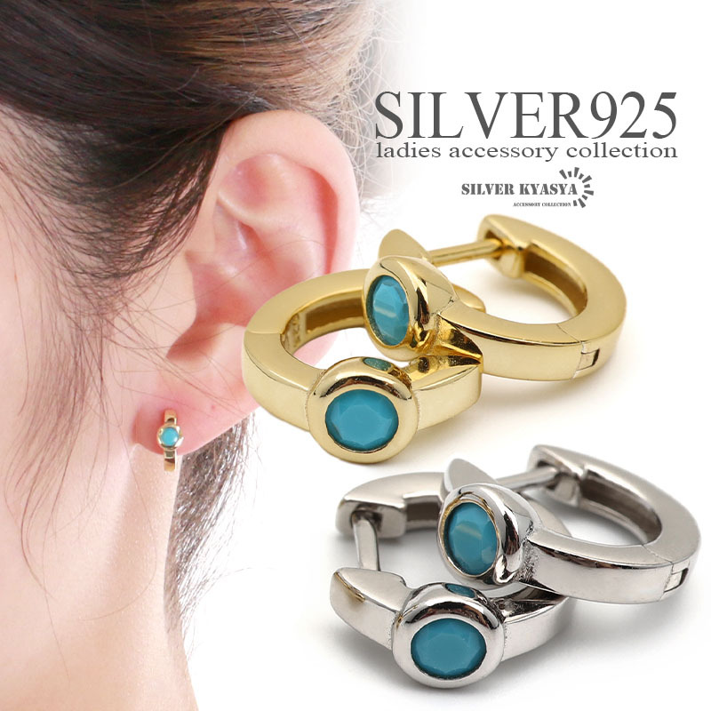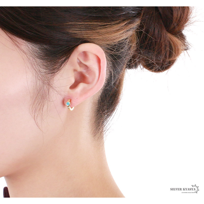 ■約3ミリのターコイズが輝くフープピアス。シンプルでさりげないデザインなのでどんなファッションも邪魔せず着用できます。