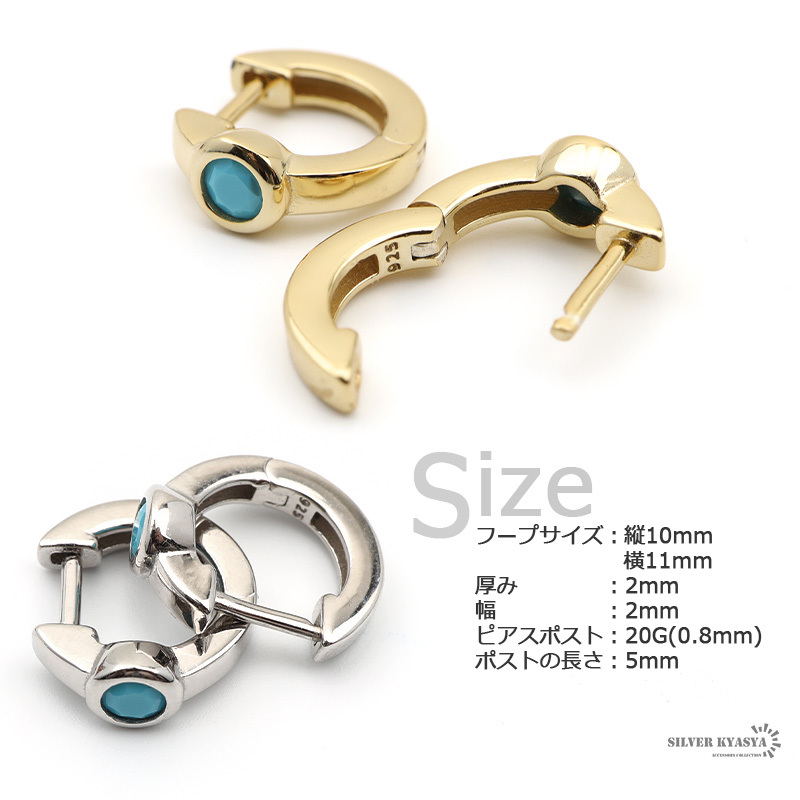 フープサイズ:縦10ミリ横11ミリ厚み:2ミリ幅:2ミリピアスポスト:20g(0.8ミリ)ポストの長さ:5ミリ