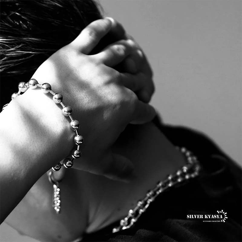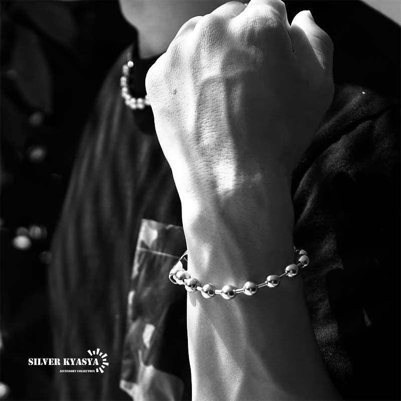 幅8mmのラージサイズのボールを使用した、シンプルなボールチェーンブレスレットです。