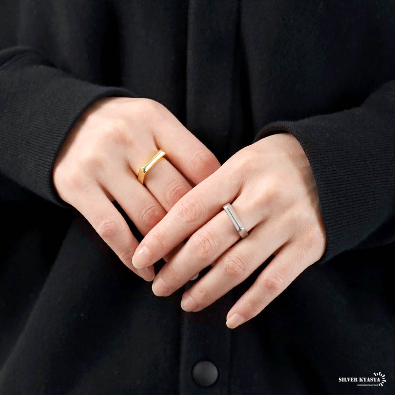 印台リングのようで、よく見ると先端が丸みを帯びているデザイン。女性らしさも兼ね揃えた、シンプルリング。