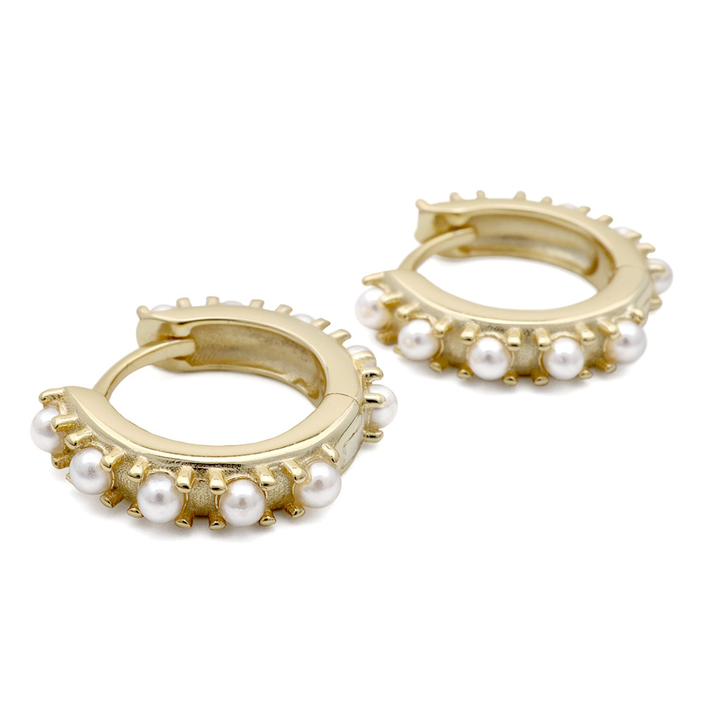 小粒のパールをふんだんに使用し、キュートで華やかなピアスに仕上げました。
