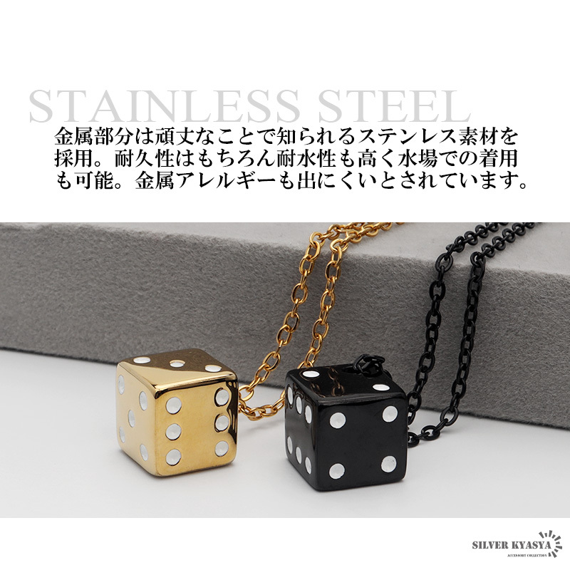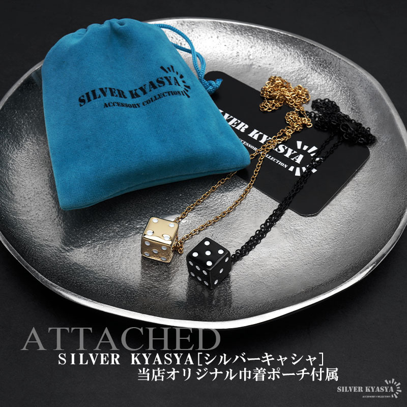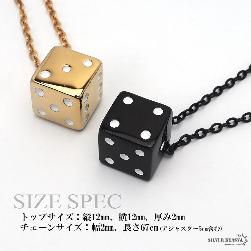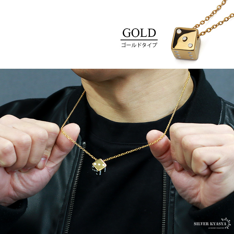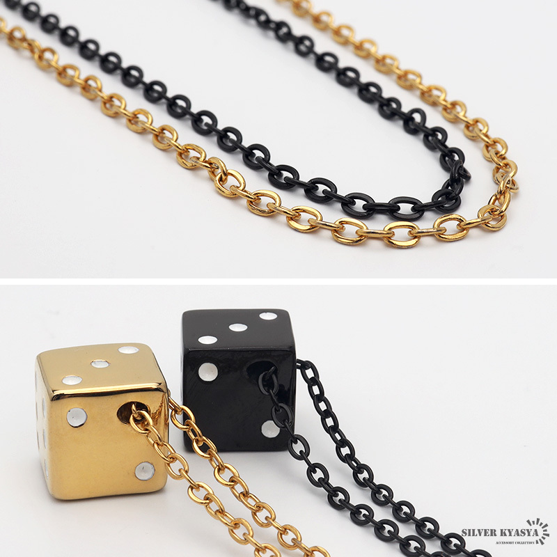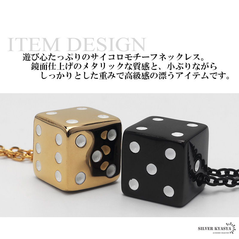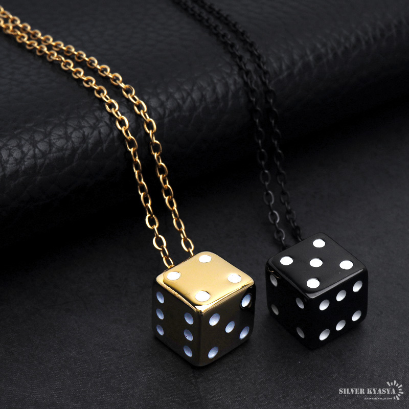 遊び心たっぷりのサイコロモチーフネックレス。鏡面仕上げのメタリックな質感と、小ぶりながらしっかりとした重みで高級感の漂うアイテムです。