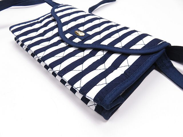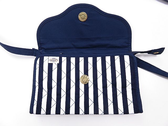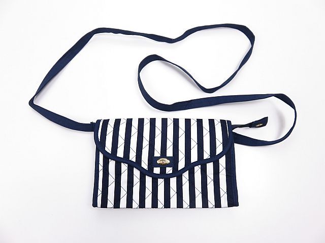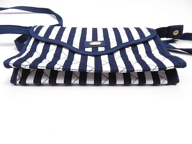 【送料無料】美品 ナラヤ NaRaYa ストライプ ショルダーバッグ キルティング ロゴプレート付き 布製 タイ