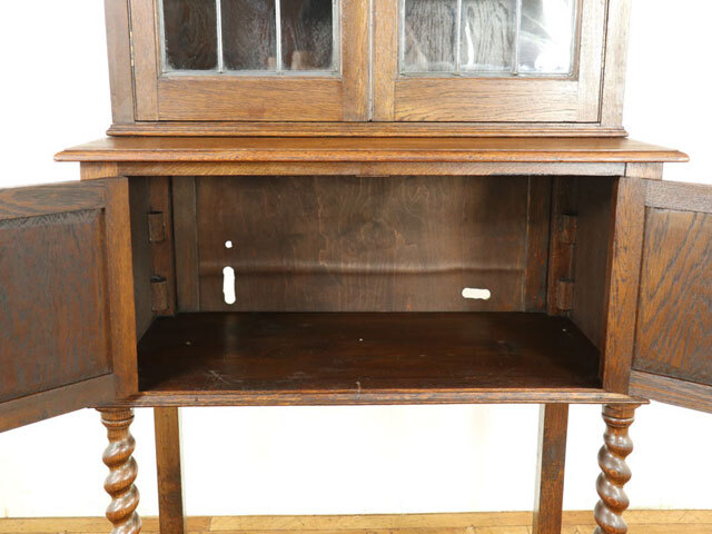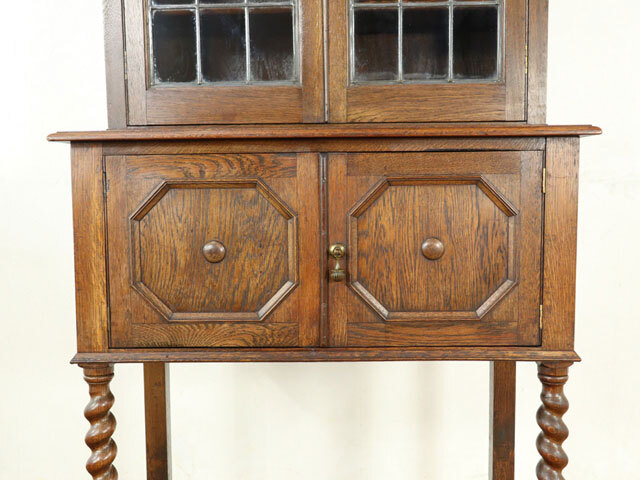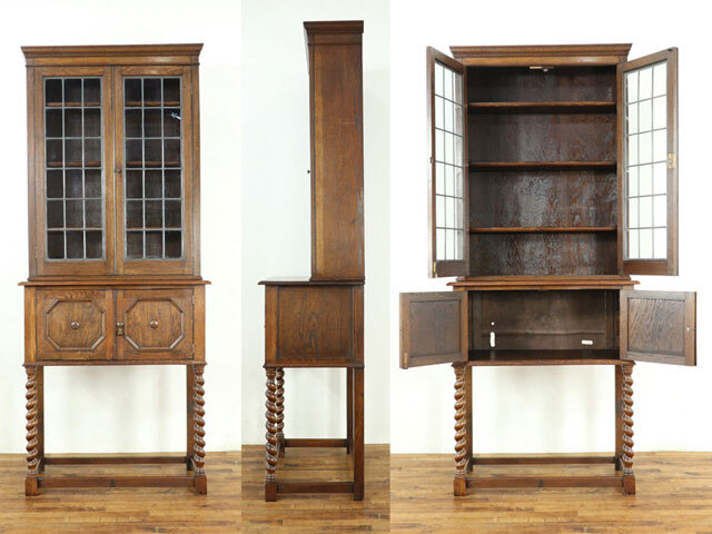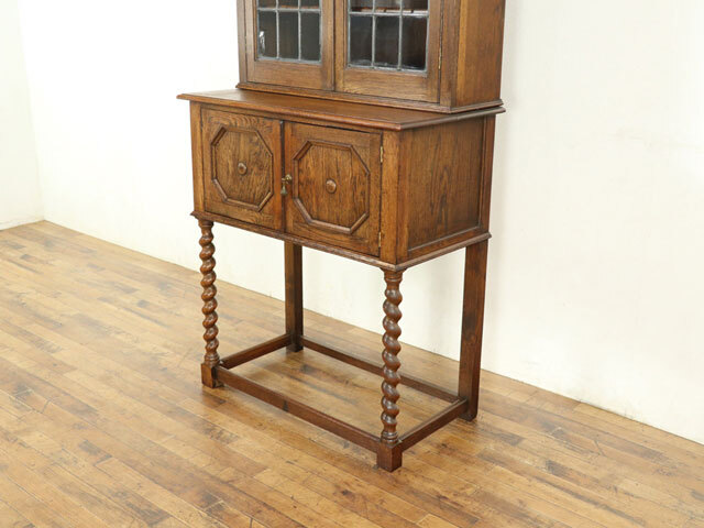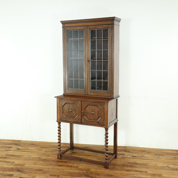 キャビネット 珍しい構造 ステンドグラス ツイストレッグ すっきり 収納棚 飾り棚 イギリス アンティークフレックス 59354