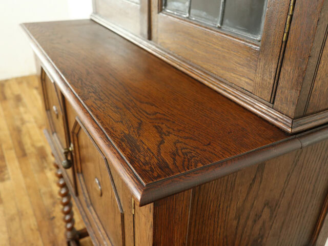 ステンドの扉が付いているとイギリスアンティーク家具らしさがグッと上がる気がします。