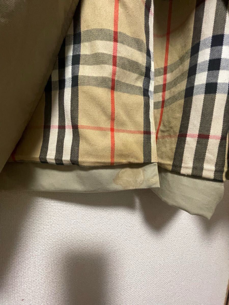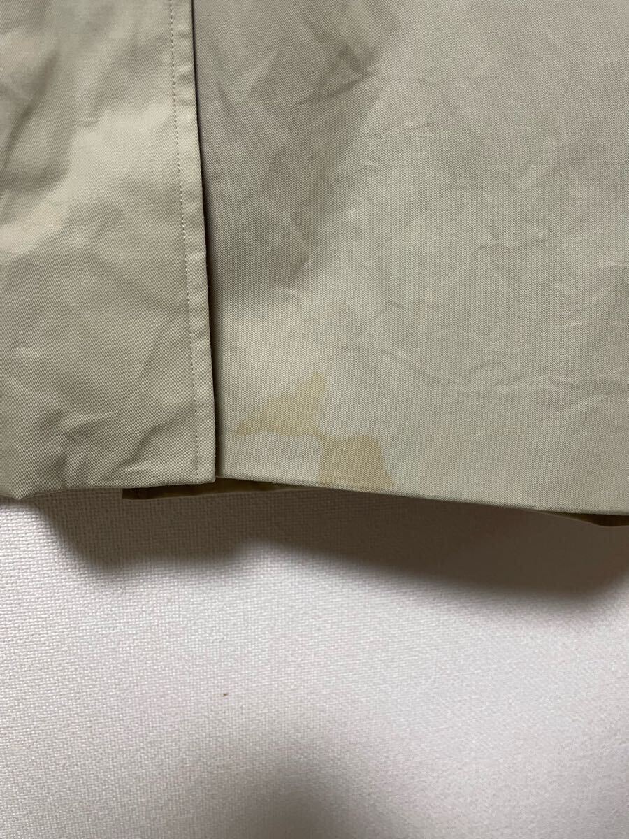 汚れ、左ポケット下に針金ハンガーで引っかかった時に出来た破れあります。