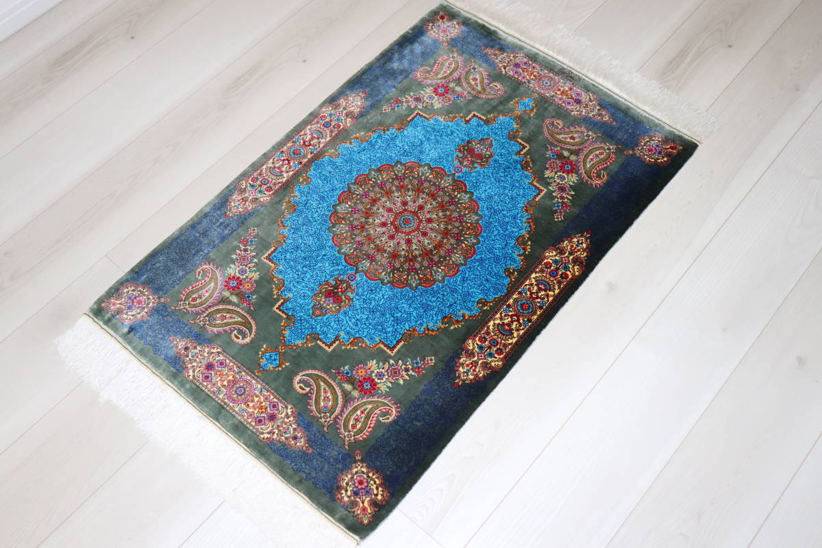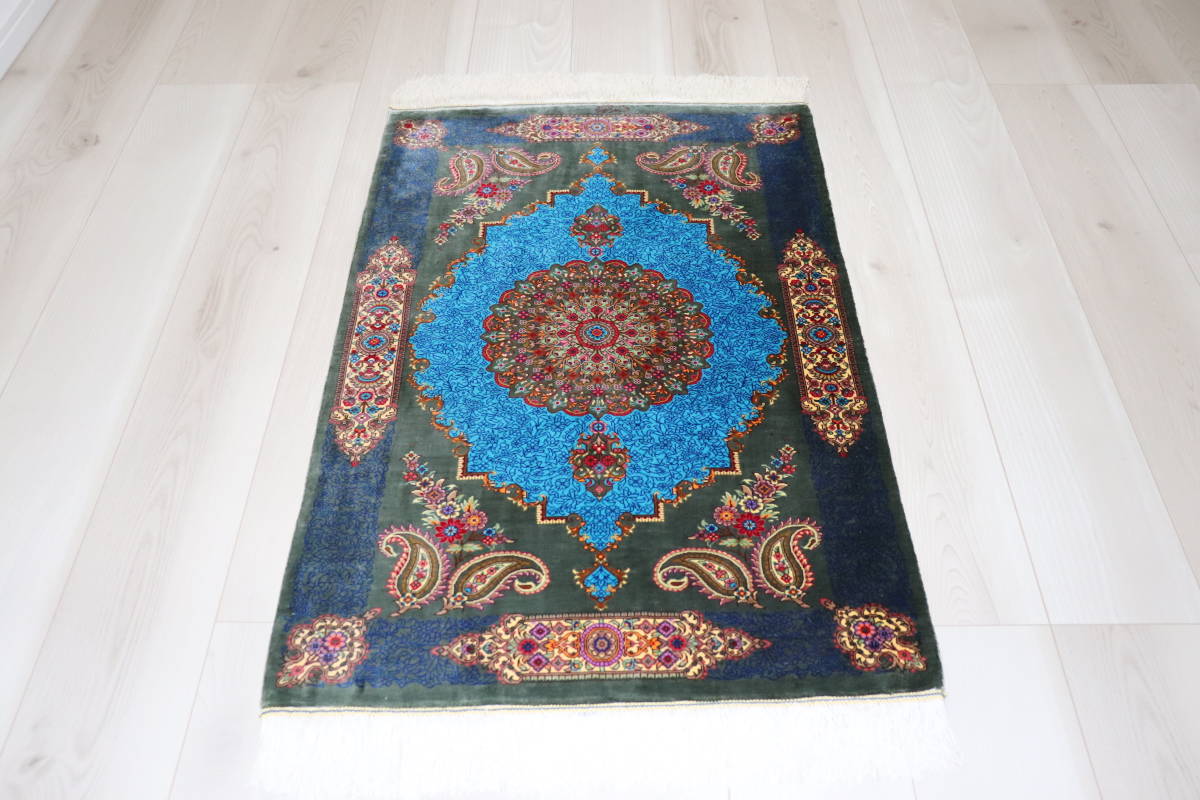 誰もが魅了される最高品質のシルク、クム産の美しい芸術的なペルシャ絨毯のご紹介です。