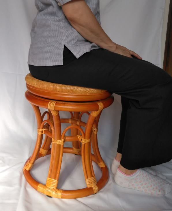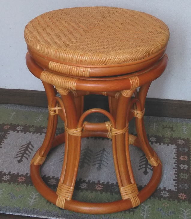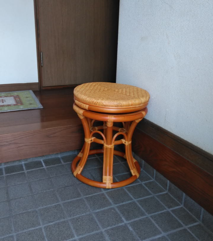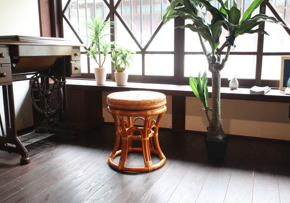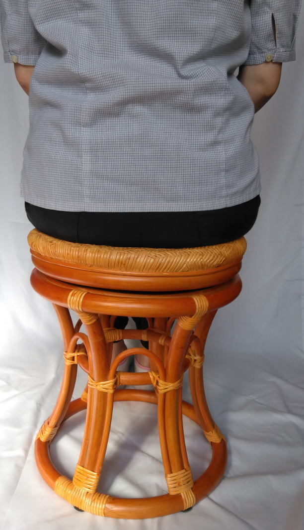 立ち座りがしやすい高さの、ラタン 回転スツールです。