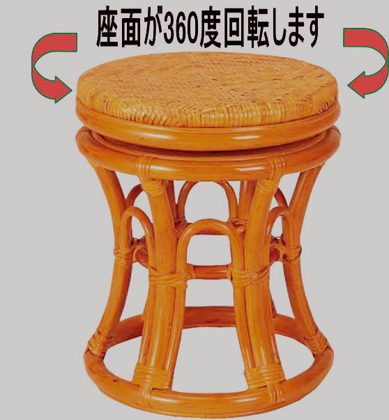 (籐)回転ラタンスツール 42cm高 ハニーブラウン chikada-st06