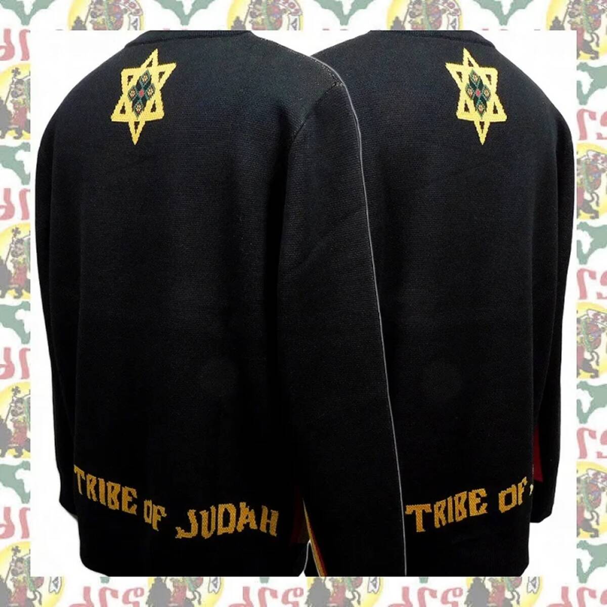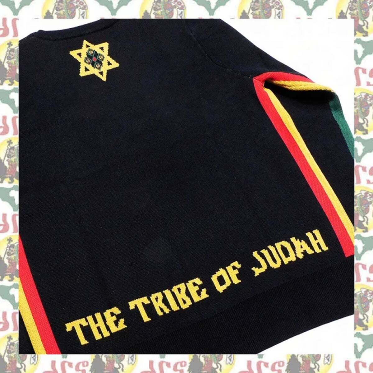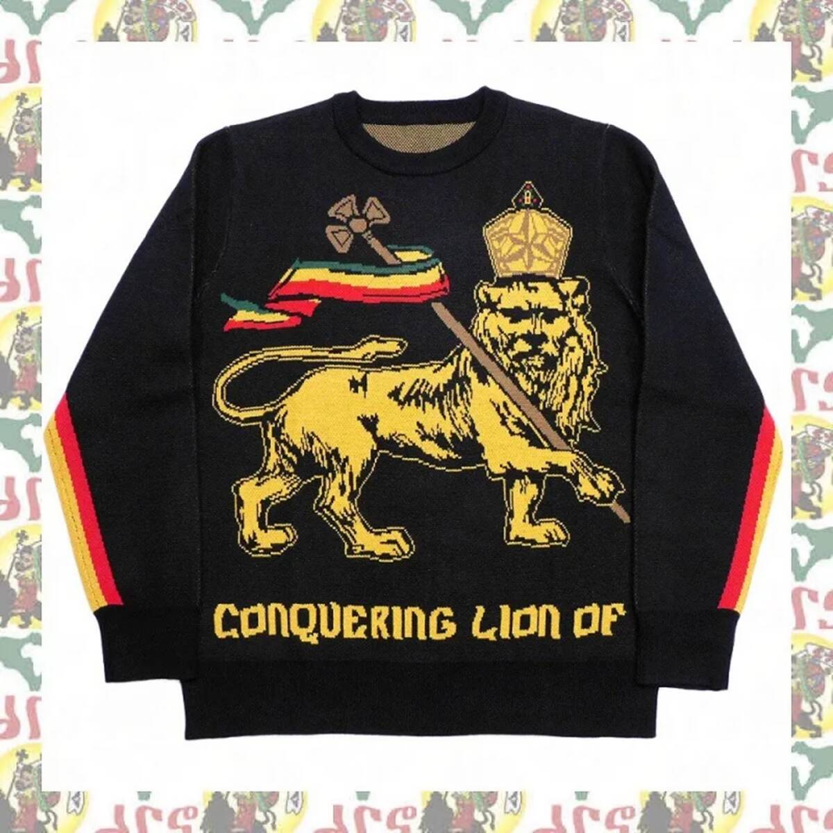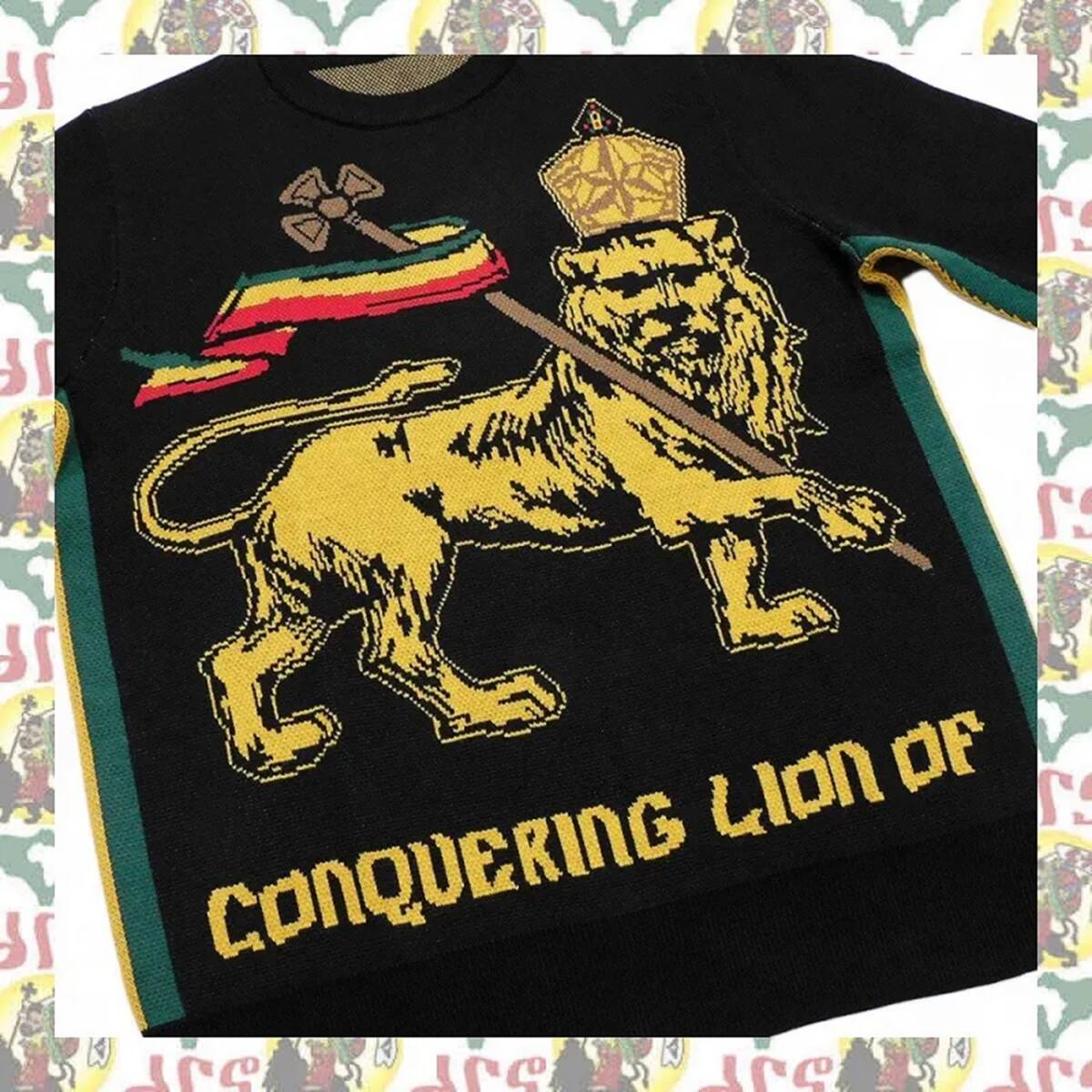 当店オリジナルのLion of Judahが前面に大胆にデザインされたジャガードセーター。