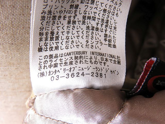 【送料無料】カンタベリー キルティングジャケット 中綿入り ベージュ ボトルネック ロゴ入り M